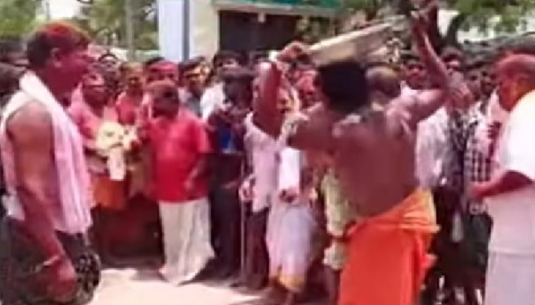 ఉత్సవాల ముగింపు నాడు శివపార్వతుల కల్యాణం జరుగుతుంది. అయితే, ఈ సందర్భంగా ఆలయ పూజారి భక్తులను దీవించే విధానం విస్మయం కలిగిస్తుంది. భక్తులు వరుసగా నిలబడగా, వారిని కాలితో తన్నుకుంటూ పూజారి ముందుకెళతాడు. అనంతరం ఆ భక్తులు గులాబీ రంగు నీటితో స్వామివారికి వసంతోత్సవం నిర్వహిస్తారు.