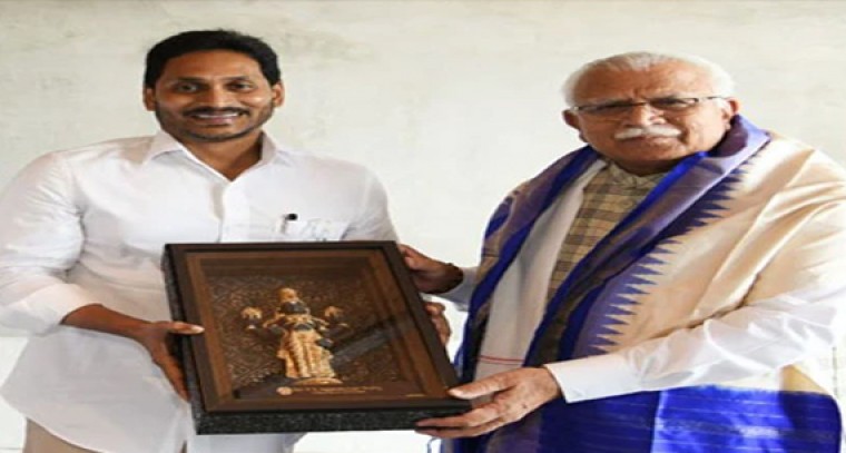 ఆంధ్రప్రదేశ్ ముఖ్యమంత్రి వైఎస్ జగన్ మోహన్ రెడ్డి హర్యానా ముఖ్యమంత్రి మనోహర్ లాల్ ఖట్టర్తో సమావేశమై పలు అంశాలపై చర్చించారు.రుషికొండ పేమ వెల్ నెస్ సెంటర్ లో సమావేశం జరిగింది.ఏపీ సీఎం జగన్ హర్యానా ముఖ్యమంత్రికి లార్డ్ వెంకటేశ్వర స్వామి జ్ఞాపికను అందించారు.