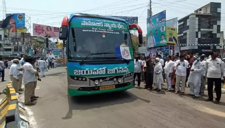 జనంలోకి ప్రభుత్వ పథకాల గురించి తెలియజేసే ఉద్దేశంతో తలపెట్టిన మంత్రుల బస్సు యాత్ర జనంలోకి దూసుకెళ్తోంది. ఎక్కడికక్కడ ప్రజలకు ప్రభుత్వం చేపట్టే కార్యక్రమాలను వివరిస్తూ యాత్ర ముందుకు సాగుతోంది. తాజాగా వైఎస్సార్ కాంగ్రెస్ పార్టీ ఆధ్వర్యంలో ఎస్సీ, ఎస్టీ, బీసీ, మైనారిటీ మంత్రులు తలపెట్టిన సామాజిక న్యాయభేరి బస్సు యాత్ర మూడో రోజు ప్రారంభమైంది. శనివారం పశ్చిమ గోదావరి జిల్లా తాడేపల్లిగూడెం నుంచి పల్నాడు జిల్లా నర్సారావుపేట వరకు బస్సు యాత్ర కొనసాగుతుంది. ఇందులో భాగంగా తాడేపల్లిగూడెం పోలీస్ ఐ ల్యాండ్ వద్ద శనివారం ఉదయం 9 గంటలకు దివంగత వైఎస్సార్, ఇతర నేతల విగ్రహాలకు మంత్రులు పూలమాలలు వేసి నివాళులర్పించారు. ఉదయం 9 గంటలకు ప్రారంభమై, 10.00 గంటలకు నారాయణపురం, 10.45కు ఏలూరు బైపాస్ మీదుగా 11.30 కి గన్నవరం చేరుకున్నారు.