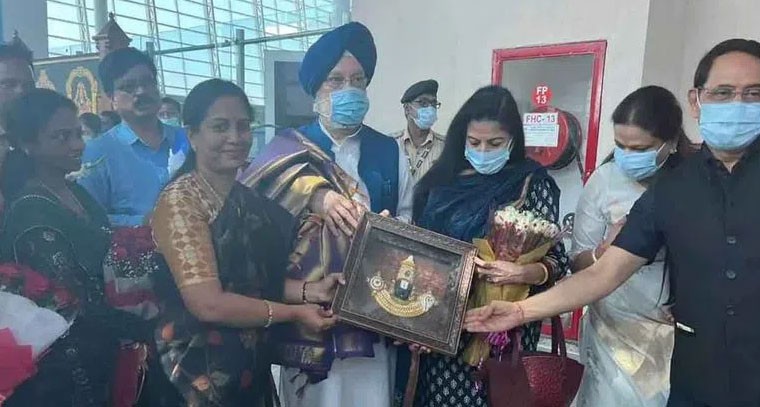 తిరుమలలోని శ్రీవారిని కేంద్రమంత్రి హర్దీప్ సింగ్ పూరీ దర్శించుకున్నారు. ఈ సందర్భంగా టీటీడీ అధికారులు, అర్చకులు స్వాగతం పలికారు. అనంతరం తీర్థప్రసాదాలు అందజేసి సన్మానించి జ్ఞాపికను అందజేశారు.స్వామివారిని దర్శించుకునేందుకు నిన్న రాత్రి తిరుమలకు చేరుకున్న కేంద్ర మంత్రికి తిరుపతి నగర మేయర్ డాక్టర్ ఆర్ శిరిషా జ్ఞాపికను అందజేశారు. తిరుపతి నగర అభివృద్ధికి రూ. 200 కోట్లను మంజూరు చేయాలని వినతి పత్రం అందజేశారు.