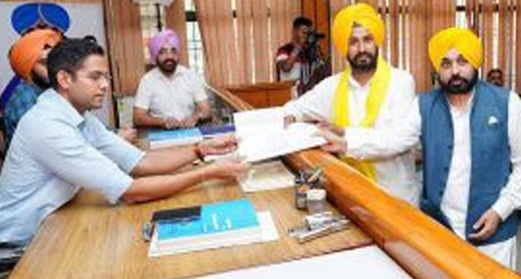 ఆమ్ ఆద్మీ పార్టీ (ఆప్) అభ్యర్థి గుర్మైల్ సింగ్ శనివారం ముఖ్యమంత్రి భగవంత్ మాన్ సమక్షంలో సంగ్రూర్ ఉప ఎన్నికకు తన నామినేషన్ పత్రాలను దాఖలు చేశారు.2022 అసెంబ్లీ ఎన్నికల్లో మన్ ధురి అసెంబ్లీ సెగ్మెంట్ నుంచి పోటీ చేసి గెలుపొందడంతో లోక్ సభ స్థానం ఖాళీ అయింది. ప్రస్తుత ముఖ్యమంత్రి మాన్ 2014 మరియు 2019లో సంగ్రూర్ నుండి గెలిచారు.సంగ్రూర్ లోక్సభ నియోజకవర్గాన్ని అభివృద్ధి చేయడం మరియు రాష్ట్రాన్ని మళ్లీ "రంగ్లా పంజాబ్"గా మార్చాలనే సిఎం భగవంత్ మాన్ మిషన్ను ముందుకు తీసుకెళ్లడమే తన ఏకైక లక్ష్యమని గుర్మైల్ అన్నారు.నియోజకవర్గం నుంచి ఎన్నికైన తర్వాత పార్లమెంటులో పంజాబ్కు సంబంధించిన కీలకమైన సమస్యలను లేవనెత్తుతానని ప్రజలకు హామీ ఇచ్చారు.