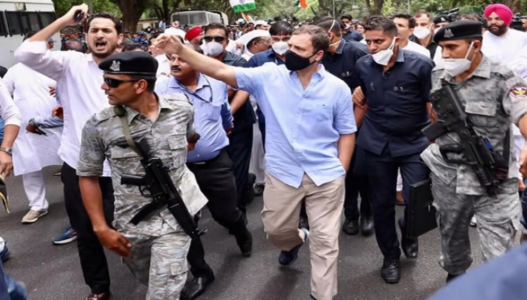 కాంగ్రెస్ పార్టీ అగ్రనేత రాహుల్ గాంధీ విషయంలో ఆ పార్టీ శ్రేణులు తీవ్ర టెన్షన్ తో ఉన్నాయి. నేషనల్ హెరాల్డ్ కేసులో కాంగ్రెస్ పార్టీ అగ్రనేత రాహుల్ గాంధీని ఎన్ఫోర్స్మెంట్ డైరెక్టరేట్ (ఈడీ) అధికారులు 8 గంటలుగా విచారిస్తున్నారు. సోమవారం ఉదయం ఈడీ కార్యాలయానికి వెళ్లిన రాహుల్ను 3 గంటల పాటు విచారించిన ఈడీ అధికారులు మధ్యాహ్నం భోజనం కోసం రాహుల్ ఇంటికి వెళ్లి వచ్చేందుకు అనుమతించారు. భోజనం తర్వాత తిరిగి ఈడీ కార్యాలయానికి వచ్చిన రాహుల్ను 5 గంటలకు పైగా అధికారులు విచారిస్తూనే ఉన్నారు. పీఎంఎల్ఏ సెక్షన్ 50 కింద ఈడీ అధికారులు రాహుల్ వద్ద వాంగ్మూలాన్ని రికార్డు చేస్తున్నట్లుగా సమాచారం.