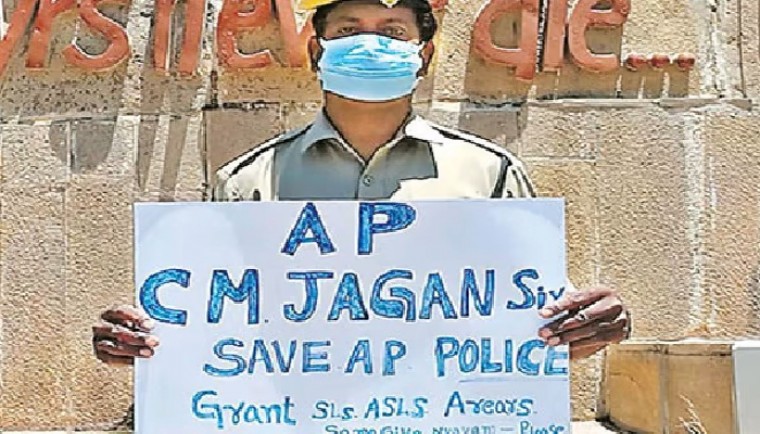 న్యాయం చేయాలని సహజంగా పోలీసులవద్దకు ప్రజలు వెళ్తుంటారు. అలాంటి ఖాకీయే తమకు న్యాయం చేయాలని కోరడం మొదలెట్టాడు. ఏపీ పోలీస్ను కాపాడాలంటూ ఏఆర్ కానిస్టేబుల్ ఒకరు ప్లకార్డు పట్టుకుని నిరసన తెలిపారు. పోలీసులకు రావాల్సిన బకాయిలు చెల్లించాలంటూ అనంతపురం జిల్లాకు చెందిన కానిస్టేబుల్ ప్రకాష్ నిన్న జిల్లా పోలీసు కార్యాలయ ఆవరణలోని అమరవీరుల స్తూపం వద్ద ప్లకార్డు చేబూని నిరసన తెలిపారు. ‘‘ఏపీ సీఎం జగన్ సర్.. సేవ్ ఏపీ పోలీస్. గ్రాంట్ ఎస్ఎల్ఎస్, ఏఎస్ఎల్ఎస్ ఎరియర్స్.. సామాజిక న్యాయం ప్లీజ్’’ అంటూ ప్లకార్డు ప్రదర్శించారు.
