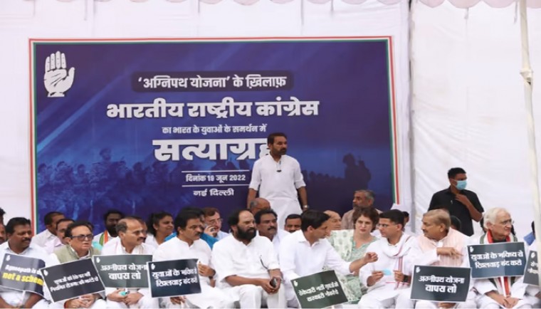 అగ్నిపథ్ పథకానికి వ్యతిరేకంగా కాంగ్రెస్ పార్టీ సత్యాగ్రహ దీక్ష చేపట్టింది. సాయుధ బలగాలలో నియామకాల కోసం కేంద్ర ప్రభుత్వం కొత్తగా ప్రవేశ పెట్టిన అగ్నిపథ్ పథకానికి వ్యతిరేకంగా జరుగుతున్న నిరసనలో కాంగ్రెస్ పార్టీ నేరుగా కార్యాచరణ మొదలు పెట్టింది. ఈ పథకానికి వ్యతిరేకంగా యువకుల ఆందోళనకు సంఘీభావంగా సత్యాగ్రహ దీక్ష చేపట్టింది. ఢిల్లీలోని జంతర్ మంతర్ వద్ద ఆదివారం ఉదయం పది గంటలకు కాంగ్రెస్ ఈ దీక్ష ప్రారంభించింది.