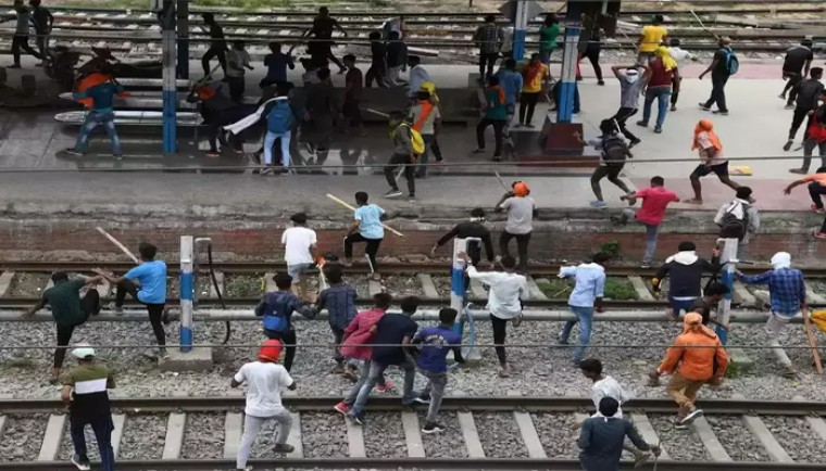 నిజానికి హర్యానాలోని పలు ప్రాంతాల్లో శుక్రవారం హింసాత్మక ఆందోళనలు జరిగాయి. ఇందులో భాగంగా నిరసనకారులు సోనిపట్లోని రోహ్తక్-పానిపట్ హైవేను దిగ్భంధించారు. కైతాల్, ఫతేహాబాద్, జింద్లలో కూడా నిరసనలు చేపట్టారు. అలాగే శనివారం మహేందర్గఢ్లో కొంతమంది యువకులు పికప్ వ్యాన్కు నిప్పంటించి విధ్వంసానికి పాల్పడ్డారని పోలీసు అధికారి వెల్లడించారు. ఇంట్లోకి బలవంతంగా ప్రవేశించి, కార్యాలయాన్ని, జనరేటర్ సెట్ను ధ్వంసం చేశారని మహేందర్గఢ్ రైల్వే ఇంజనీర్ చెప్పారు. ఈ మేరకు హింసకు పాల్పడి ప్రజా ఆస్తులను ధ్వంసం చేసే వారిపై చర్యలు తీసుకుంటామని హర్యానా హోం మంత్రి అనిల్ విజ్ హెచ్చరించారు. ఈ మేరకు ప్రభుత్వం చర్యలు తీసుకుంది.