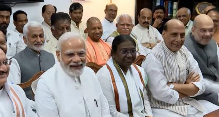 ఎన్డీఏ కూటమి తరఫున ద్రౌపది ముర్ము రాష్ట్రపతి ఎన్నికకు నామినేషన్ దాఖలు చేశారు. శుక్రవారం మధ్యాహ్నం ప్రధానమంత్రి నరేంద్ర మోదీ, కేబినెట్ మంత్రులు సహా మద్దతు పార్టీల ప్రతినిధుల సమక్షంలో రాజ్యసభ సెక్రటరీ జనరల్కు నామినేషన్ పత్రాలను ఆమె అందజేశారు. ద్రౌపది ముర్ము నామినేషన్ను ప్రధాని మోదీ ప్రతిపాదించారు. కేంద్ర మంత్రులు, బీజేపీ ఎంపీలు, ఎమ్మెల్యేలు, మద్దతు పార్టీల నేతల సంతకాలతో నాలుగు సెట్ల నామపత్రాలను ఆమె దాఖలు చేశారు. నామినేషన్ కార్యక్రమానికి వైయస్ఆర్సీపీ నుంచి విజయసాయిరెడ్డి, లోక్సభాపక్ష నేత మిథున్ రెడ్డి హాజరయ్యారు.