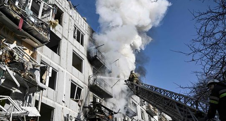 ఉక్రెయిన్ రాజధాని కీవ్ నగరంపై రష్యా మళ్లీ దాడులకు తెగబడింది. యుద్ధం తొలినాళ్లలో కీవ్ను ఆక్రమించుకునేందుకు ప్రయత్నించి వెనక్కి తగ్గిన రష్యా తాజాగా దూకుడు పెంచింది. పుతిన్ సైన్యం 14 క్షిపణులను కీవ్ నగరంపై ఆదివారం నాడు ప్రయోగించింది. ఈ దాడుల్లో భాగంగా రెండు నివాస భవనాలు కూలిపోగా, నలుగురు గాయపడ్డారు. నేలమట్టమైన శిథిలాల కింద ఇరుక్కుపోయిన ఏడేళ్ళ చిన్నారిని అక్కడి పౌరులు రక్షించారు. దాదాపు 22 రోజుల తర్వాత రష్యా క్షిపణులతో దాడి చేయడం ఇదే మొదటిసారి. మరోవైపు రష్యా అధ్యక్షుడు పుతిన్ ఈ దాడులను సమర్ధించుకున్నారు.