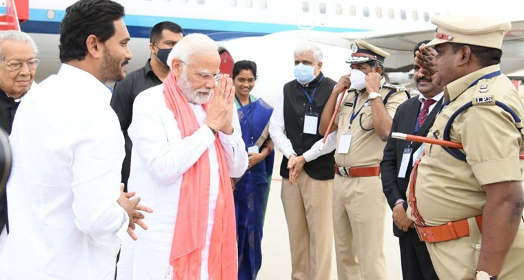 పశ్చిమ గోదావరి జిల్లా భీమవరంలో అల్లూరి సీతారామరాజు 125వ జయంతి వేడుకలలో పాల్గొనేందుకు భారత ప్రధాని నరేంద్ర మోడీ సోమవారం హైదరాబాదు నుండి ప్రత్యేక విమానంలో గన్నవరం విమానాశ్రయం చేరుకున్నారు . రాష్ట్ర గవర్నర్ బిశ్వ భూషణ్ హరి చందన్ , రాష్ట్ర ముఖ్యమంత్రి వై . యస్ . జగన్ మోహన్ రెడ్డి , రాష్ట్ర గృహ నిర్మాణ శాఖ మంత్రి జోగి రమేష్ తదితరులు మర్యాద పూర్వకంగా కలిసి పుష్పగుచ్చాలతో స్వాగతం పలికారు. ఈ సందర్భంగా పోలీస్ శాఖ భద్రత ఏర్పాట్ల మీద ప్రత్యేక శ్రద్ధ వహించి కార్యక్రమానికి ఎటువంటి అంతరాయం కలగకుండా చూసుకోవాలని కలెక్టర్ తెలియజేసారు.