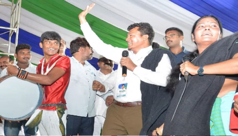వైసీపీ ప్లీనరీని పార్టీ అధ్యక్షుడు వైఎస్ జగన్ మోహన్ రెడ్డి ప్రారంభించడానికి ముందు వంగపండు ఉష పాటలు పాడుతున్న క్రమంలో ఉష బృందంతో కలిసి మంత్రి సీదిరి అప్పలరాజు సందడి చేశారు. భుజంపై గొంగడి వేసుకుని ఉషతో కలిసి పాట పాడిన ఆయన ఆమె బృందంతో కలిసి కాలు కూడా కదిపారు. ఈ సన్నివేశం పార్టీ శ్రేణులను ఆకట్టుకుంది. ఇదిలావుంటే ఏపీలో అధికార పార్టీ వైసీపీ ప్లీనరీ సమావేశాలు గుంటూరు జిల్లా పరిధిలోని ఆచార్య నాగార్జున విశ్వవిద్యాలయం సమీపంలో శుక్రవారం వేడుకగా ప్రారంభమైన సంగతి తెలిసిందే. ఈ సమావేశాల్లో భాగంగా పార్టీ శ్రేణులను ఉత్సాహపరిచేందుకు సాంస్కృతిక కార్యక్రమాలను ఏర్పాటు చేశారు. ఈ కార్యక్రమాల్లో వంగపండు ఉష హుషారెత్తించే ఉద్యమ గీతాలను ఆలపించారు.