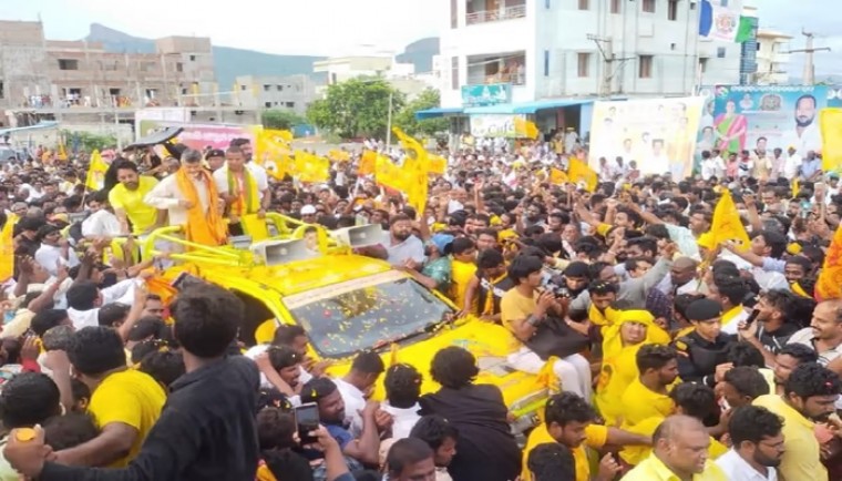తెలుగు దేశం పార్టీ అధినేత నారా చంద్రబాబునాయుడు నగరి యాత్ర జనసంద్రంగా మారింది. చంద్రబాబు చేపట్టిన జిల్లాల యాత్రలో భాగంగా శుక్రవారం ఆయన చిత్తూరు జిల్లాలోని నగరిలో పర్యటించారు. ఏపీ పర్యాటక శాఖ మంత్రి రోజా సొంత నియోజకవర్గమైన నగరిలో చంద్రబాబు చేపట్టిన రోడ్ షోకు భారీ సంఖ్యలో జనం హాజరయ్యారు. ఫలితంగా నగరిలోని ప్రధాన రహదారులు జన సందోహంతో నిండిపోయాయి. నగరి రోడ్ షోలో భాగంగా పట్టణంలోని ఎన్టీఆర్ కూడలిలో బాదుడే బాదుడు కార్యక్రమాన్ని చంద్రబాబు నిర్వహించారు. ఈ సందర్భంగా ఆయన వైసీపీ సర్కారుపై నిప్పులు చెరిగారు. మూడేళ్ల పాలనలో జగన్ నిర్ణయాల వల్ల ఒక్కరైనా సంతోషంగా ఉన్నారా? అని ఆయన ప్రశ్నించారు. పెగాసస్ వినియోగించానని తనపై కేసులు పెట్టేందుకు జగన్ సర్కారు యత్నిస్తోందని ఆరోపించిన చంద్రబాబు... తాను ప్రజలకు భయపడతాను తప్పించి కేసులకు కాదని స్పష్టం చేశారు.
