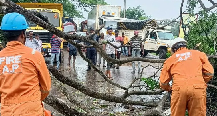విస్తారంగా కురుస్తున్న వర్షాల కారణంగా కాకినాడలోని ADB రోడ్డు కొప్పవరం గ్రామ నూతన బ్రిడ్జి వద్ద విరిగి పడిన చెట్టు. సంఘటన విషయం గమనించి తిమ్మాపురం పోలీసులు మరియు జిల్లా పోలీసు కార్యాలయ అధికారులను అప్రమత్తం చేసిన రోడ్ సేఫ్టీ వాహన సిబ్బంది. ఒక గంట(1 Hr) వ్యవధిలోనే విరిగి పడిన భారీ చెట్టును తొలగించిన తిమ్మాపురం పోలీసులు, రోడ్ సేఫ్టీ వాహన సిబ్బంది మరియు ఫైర్ డిపార్ట్మెంట్ (SDRF) సిబ్బందిని, అన్ని శాఖల అధికారులను సమన్వయం చేసిన స్పెషల్ బ్రాంచ్ అధికారులను అభినందించిన జిల్లా కలెక్టర్ శ్రీమతి కృతికా శుక్లా IAS & జిల్లా SP శ్రీ M.రవీంద్రనాథ్ బాబు, IPS.,ఈ విషయమై జిల్లా SP గారు స్పందిస్తూ రోడ్డు పై ప్రజలకు అసౌకర్యంగా, వాహన రాకపోకలకు అడ్డుగా ఉన్న చెట్టును సమన్వయంతో పనిచేసి చెట్టు పడిపోయిన ఒక గంట(1 Hr) వ్యవధిలోనే తొలగించడానికి కృషి చేసిన తిమ్మాపురం పోలీసులు, రోడ్ సేఫ్టీ సిబ్బంది మరియు ఫైర్ డిపార్ట్మెంట్(SDRF) సిబ్బందికి, సంఘటన విషయమై అన్ని శాఖల అధికారులకు సమాచారం అందించి సమన్వయం చేసిన స్పెషల్ బ్రాంచ్ DSP శ్రీ M.అంబిక ప్రసాద్ గారికి ప్రత్యేక అభినందనలు తెలియజేసారు. అదేవిధంగా జిల్లా కలెక్టర్ గారు కూడా అందరిని అభినందించడం జరిగింది.