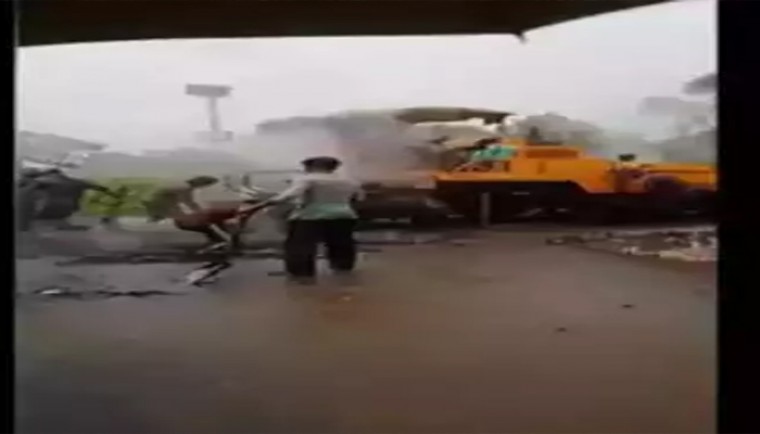 కాసుల కోసం ఎంతటిపనినైనా చేసేస్తారు కొందరు. తాజాగా పంజాబ్ రాష్ట్రంలో ఓ వింత ఘటన నెలకొంది. ఎడతెరిపి లేకుండా కురుస్తోన్న వర్షాలకు బయటకు వెళ్లే పరిస్థితి లేదు. అలాంటిది ఈ భారీ వర్షంలో రోడ్డు పనులు జరుగుతున్నాయి. వానలకు తడుచుకుంటూ కూలీలు పనులు చేస్తున్నారు. దాంతో నలుగురు అధికారులను సస్పెండ్ చేశారు. పంజాబ్లోని హోషియార్పూర్లో ఈ ఘటన చోటుచేసుకుంది. షేర్పూర్ డాకో గ్రామంలో వర్షం కురుస్తోండగా కొందరు రోడ్డు పనులు చేస్తున్నారు. భారీ వర్షాల్లో కార్మికులు పనులు నిర్వహించారు. ఆ దృశ్యాలను గ్రామస్థులు వీడియోగా రికార్డ్ చేశారు. ఆ వీడియో సోషల్ మీడియాలో వైరల్ అయింది.
