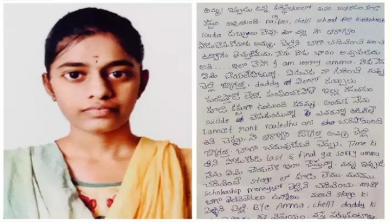 ఓ విద్యార్థిని ఆత్మహత్య లెటర్ అందర్నీ కంటతడిపెట్టిస్తుంటే ఆ విద్యార్థి తల్లిదండ్రులు చెప్పిన వివరాలతో గుండె తరుక్కుపోతోంది. ఎన్టీఆర్ జిల్లా నందిగామలో విషాదం చోటు చేసుకుంది. రైతుపేటలో ప్రభాకర్ కుమార్తె హరిత వర్షిణి ప్రాణాలు తీసుకుంది. బ్యాంకులో రుణం ఉండటంతో.. తల్లిదండ్రులు చదివించే స్థోమత లేదని భావించి ఆత్మహత్య చేసుకుంది. హరిత వర్షిణికి ఇటీవలే ఎంసెట్లో 15 వేల ర్యాంకు వచ్చింది. తెలంగాణ ఎంసెట్కు కూడా ఆమె ప్రిపేర్ అవుతోంది. ఇంతలో ప్రాణాలు తీసుకోవడం స్థానికంగా తీవ్ర విషాదాన్ని నింపింది. ఆమె మరణానికి ముందు ఓ లేఖ కూడా రాసింది.