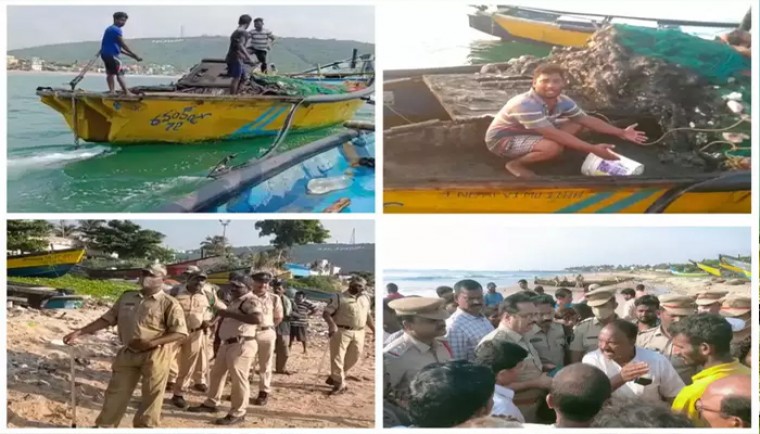 మత్స్యకారపల్లిలో మరోమారు రింగు వలల వివాదం మంట రాజేసుకొంది. విశాఖలో మత్స్యకారపల్లిలో కొందరు రింగ్ వలలతో చేపల వేటకు వెళ్లగా.. దీనికి సమీపంలో ఉన్న జాలరిపేట గ్రామస్తులు వ్యతిరేకిస్తున్నారు. సంప్రదాయ-రింగు వలల మత్స్యకారులు రెండు వర్గాలుగా విడిపోయారు. లంగరు వేసిన 6 తెప్పలు, వలలను సంప్రదాయ మత్స్యకారులు తగులబెట్టారు. తెల్లవారుజామున 2 గంటల నుంచి వ్యవహారం నడుస్తోంది. దీనిపై పోలీసులు వెంటనే స్పందించి రెండు గ్రామస్తుల మధ్య వివాదం చెలరేగ కుండా అడ్డుకున్నారు.