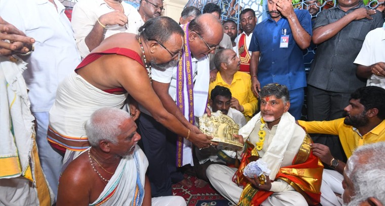 తెలుగుదేశం అధినేత నారా చంద్రబాబునాయుడు శుక్రవారం భద్రాద్రి శ్రీ సీతారామచంద్ర స్వామిని దర్శించుకున్నారు. ఈ సందర్భంగా ఆలయ సిబ్బంది, అర్చకులు ఆలయ మర్యాదలతో ఆయనకు స్వాగతం పలికారు. ప్రత్యేక పూజలు నిర్వహించిన అనంతరం వేద పండితులు ఆయనకు వేదాశీర్వచనం అందించారు .