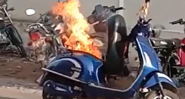 శుక్రవారం కనిగిరి రోడ్డులోని అయ్యప్పస్వామి గుడి సమీపంలో ఓ చోట వద్ద వాహనానికి చార్జింగ్ పెట్టాడు. కొద్దిసేపటికే వాహనం బ్యాటరీ పేలి మంటలు వ్యాపించాయి. చుట్టుపక్కల వారు గమనించి వెంటనే నీళ్లు చల్లి మంటలు ఆర్పివేశారు. బ్యాటరీ పేలిన సమయంలో సమీపంలో ఎవరూ లేకపోవడంతో ఎటువంటి ప్రమాదం జరగలేదు.