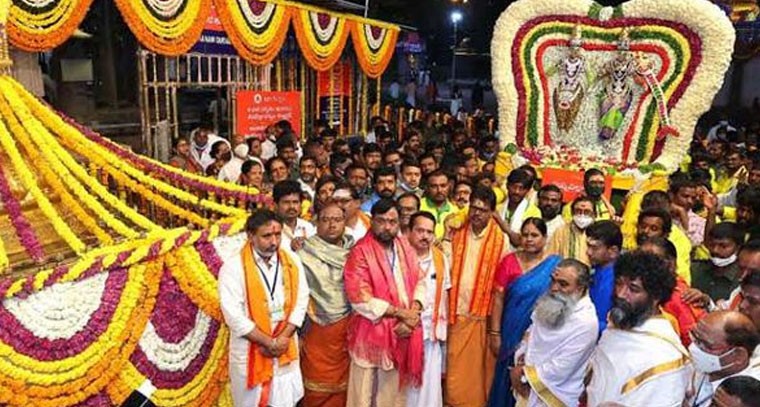 తిరుపతి జిల్లా సత్యవేడు నియోజకవర్గం నారాయణవనం స్థానిక నిర్వహిస్తున్న మహాభారత ఉత్సవాల్లో భాగంగా మంగళవారం రాత్రి పాండవులతో ద్రౌపది కళ్యాణం ఘనంగా నిర్వహించారు. తొలుత ఆలయంలో ప్రత్యేక పూజలు నిర్వహించారు. సాయంత్రం అశ్వవాహనంపై పార్ధుడు శ్రీకృష్ణుడు ద్రౌపది వేర్వేరుగా తిరుచ్చి వాహనాలను అధిరోహించి గ్రామ వీధుల్లో విహరించారు. స్థానికులు భక్తులు అధిక సంఖ్యలో పాల్గొని మొక్కులు తీర్చుకున్నారు.