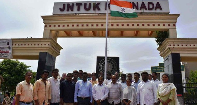 భారతదేశానికి స్వాతంత్ర్యం వచ్చి 75 సంవత్సరాలు పూర్తయిన సందర్భంగా ఆజాద్ కా అమృత్ మహోత్సవ్ వేడుకల్లో భాగంగా హర్ ఘర్ తిరంగా కార్యక్రమం ద్వారా ది. 13. 08. 2022 శనివారం ఉదయం జెఎన్ టియుకె మెయిన్ గేట్ వద్ద ఉపకులపతిప్రొ. జివిఆర్. ప్రసాదరాజు జాతీయ జెండాను ఎగురవేశారు. జెఎన్ఎయుకె ఎన్ఎస్ఎస్ కో - ఆర్డినేటర్ డా. జి. శ్యామ్కుమార్ అధ్యక్షతన జరిగినఈకార్యక్రమానికిఉపకులపతిప్రొ. జివిఆర్. ప్రసాదరాజు ముఖ్యఅతిథిగా విచ్చేయగా గౌరవ అతిథులుగా రెక్టార్ ప్రొ. కెవి. రమణ , రిజిస్ట్రార్ ప్రొ. ఎల్. సుమలత , యుసిఇకె ప్రిన్సిపాల్ ప్రొ. ఎం. హెచ్. ఎం. కృష్ణప్రసాద్లు విచ్చేశారు. ఈ సందర్భంగా ఉపకులపతి ప్రొ. జివిఆర్. ప్రసాదరాజు మాట్లాడుతూ చిన్నారుల నుండి పెద్దల వరకు ప్రతీ ఒక్కరు హర్ ఘర్ తిరంగా కార్యక్రమంలో భాగంగా జాతీయ జెండాను ఎగురవేయాలన్నారు. భారతదేశానికి స్వాతంత్య్రం వచ్చి 75 సంవత్సరాలు పూర్తయిన శుభ సందర్భాన్ని పురస్కరించుకుని స్వాతంత్ర్య దినోత్సవ వేడుకలను యూనివర్శిటీ ప్రాంగణంలో అత్యంత ఘనంగా నిర్వహించనున్నామన్నారు. అదేవిధంగా జెఎన్టియుకె పరిపాలనా భవనం వద్ద ఉపకులపతి ప్రొ. జివిఆర్. ప్రసాదరాజు జాతీయ జెండాను ఎగురవేసి స్వాతంత్య్ర దినోత్సవ వేడుకలలో ప్రతీ ఒక్కరు పాల్గొని విజయవంతం చేయాలన్నారు. జెఎన్టియుకె యూనివర్శిటీ మరియు యుసిఐకెలోని అన్ని విభాగాలలో బోధన , బోధనేతర సిబ్బంది , విద్యార్థులు జాతీయ జెండాను ఎగురవేయాలని , జెండాను ఎగురవేసినపుడు ఫోటో తీయించుకుని దానిని https: //harghartiranga. com వెబ్సైట్లో అప్లోడ్ చేయవలసినదిగా ఎన్ఎస్ఎస్ కో - ఆర్డినేటర్ డా. జి. శ్యామ్కుమార్ సూచించారు.