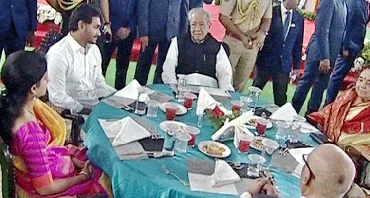 స్వాతంత్య్ర దినోత్సవ వేళ రాజ్భవన్లో గవర్నర్ బిశ్వభూషన్ హరిచందన్ ఏర్పాటు చేసిన తేనీటి విందు (ఎట్హోమ్) కార్యక్రమానికి ముఖ్యమంత్రి వైఎస్ జగన్మోహన్ రెడ్డి హాజరయ్యారు. రాజ్భవన్ చేరుకున్న సీఎం జగన్ దంపతులకు గవర్నర్ దంపతులు ఎదురెళ్లి స్వాగతం పలికారు. ఈ కార్యక్రమానికి హైకోర్టు చీఫ్ జస్టిస్ ప్రశాంత్ కుమార్ మిశ్రా, ప్రతిపక్షనేత చంద్రబాబు, పలువురు మంత్రులు, సీఎస్ సమీర్ శర్మ, డీజీపీ రాజేంద్రనాథ్రెడ్డి, హైకోర్టు న్యాయమూర్తులు హాజరయ్యారు.