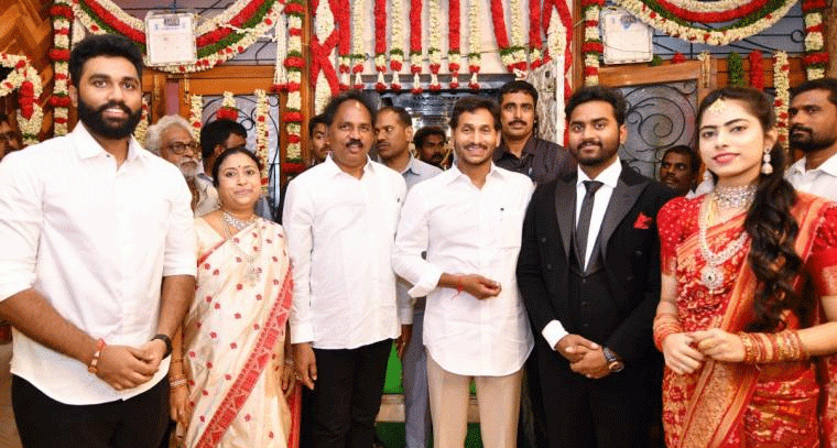 విశాఖ సౌత్ ఎమ్మెల్యే వాసుపల్లి గణేష్ కుమార్ నివాసంలో నూతన వధూవరులను సీఎం శ్రీ వైయఎస్ జగన్ మోహన్ రెడ్డి ఆశీర్వదించారు. మర్రిపాలెంలోని ఎమ్మెల్యే గణేష్ కుమార్ నివాసంలో ఆయన తనయుడు, వరుడు సూర్య, వధువు రాశిలను ముఖ్యమంత్రి ఆశీర్వదించారు. వీరి వివాహాం ఇటీవల జరిగిన విషయం విధితమే.