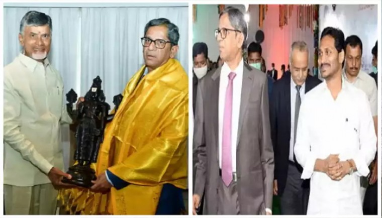 సుప్రీం కోర్టు ప్రధాన న్యాయమూర్తి (సీజేఐ) ఎన్వీ రమణతో ముఖ్యమంత్రి వైఎస్ జగన్, టీడీపీ అధినేత నారా చంద్రబాబు నాయుడు వేర్వేరుగా సమావేశం అయ్యారు. జస్టిస్ ఎన్వీ రమణతో వై.ఎస్.జగన్ మర్యాదపూర్వంకంగానే భేటీ అయ్యారు. 20 నిమిషాల పాటూ రమణతో సీఎం భేటీ కొనసాగింది. సీఎం జగన్ వెళ్లిన అనంతరం సీజేఐతో భేటీ టీడీపీ అధినేత చంద్రబాబు సమావేశం అయ్యారు. 15 నిమిషాల పాటూ ఇద్దరూ సమావేశం అయ్యారట. సీఎం జగన్-చంద్రబాబు కాన్వాయిలు క్లాష్ కాకుండా షెడ్యూల్ చేశారు. ముఖ్యమంత్రి జగన్, చంద్రబాబు వరుస సమావేశాలు మర్యాదపూర్వకంగానే అని తెలుస్తోంది.