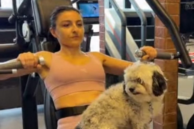 While Soha is busy lifting the weight, the only thing her furry friend lifts is the mood.