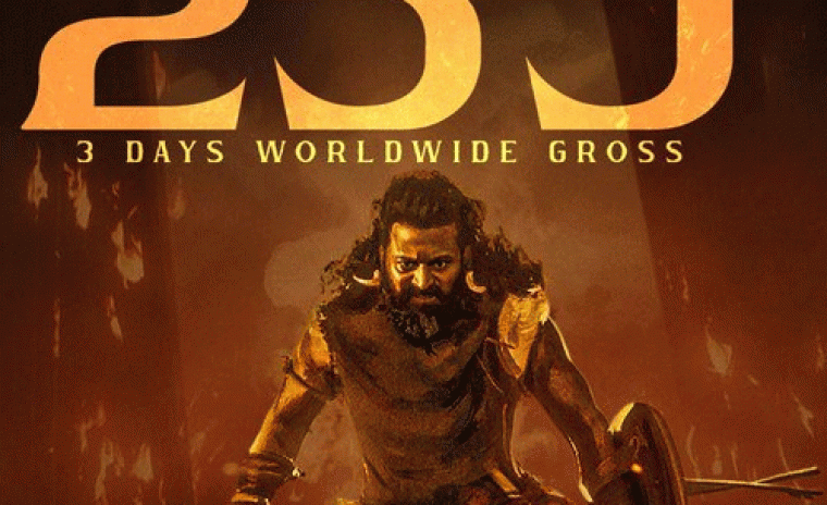 కాంతారాకు అత్యంత ఎదురుచూస్తున్న ప్రీక్వెల్ 'కాంతారా చాప్టర్ 1' ఇటీవలే విడుదల అయ్యింది. రిషబ్ శెట్టి నటించి మరియు దర్శకత్వం వహించిన ఈ సినిమా సంచలనాత్మక సమీక్షలను అందుకుంటుంది. ఈ చిత్రం బాక్సాఫీస్ వద్ద సెన్సేషన్ ని సృష్టిస్తుంది. తాజాగా మూవీ మేకర్స్ ఈ సినిమా విడుదలైన మూడు రోజులలో వరల్డ్ వైడ్ గా 235 కోట్ల గ్రాస్ ని రాబట్టినట్లు ప్రకటించారు. ఈ విషయాన్ని తెలియజేసేందుకు ప్రొడక్షన్ హౌస్ సోషల్ మీడియాలో సరికొత్త పోస్టర్ ని విడుదల చేసింది. రుక్మిని వాసంత్ ఈ సినిమాలో మహిళా ప్రధాన పాత్రలో నటిస్తుంది. ఈ సినిమాలో గుల్షన్ దేవయ్య విలన్ పాత్రలో, జయ రామ్ ముఖ్య పాత్రలో కనిపించనున్నారు. హోంబేల్ ఫిల్మ్స్ నిర్మించిన ఈ సినిమాకి అజనీష్ లోక్నాథ్ యొక్క శక్తివంతమైన సౌండ్ట్రాక్ ఉంది.