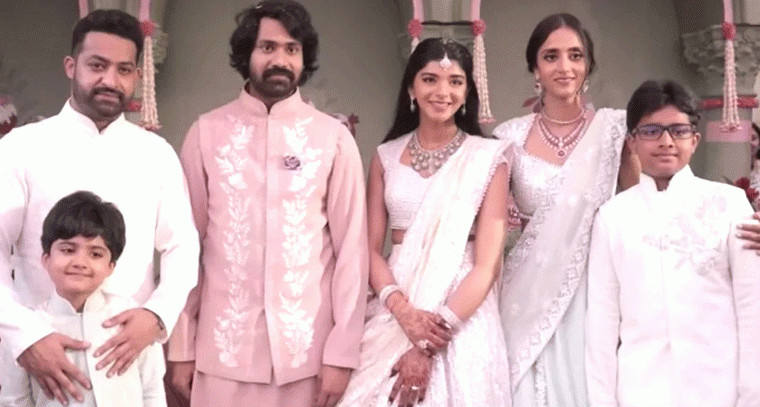 మ్యాడ్ స్క్వేర్ హీరో నార్నే నితిన్ వివాహ బంధంలోకి అడుగుపెట్టారు. నెల్లూరు జిల్లాకు చెందిన శివానీకి మూడు ముళ్లు వేసి జీవిత బంధం కట్టుకున్నారు. ఈ గ్రాండ్ వెడ్డింగ్ వేడుకలో జూనియర్ ఎన్టీఆర్ హాజరై కుటుంబ సభ్యులతో కలిసి సందడి చేశారు.వివాహ వేడుకకు సంబంధించిన వీడియోలు, ఫొటోలు ప్రస్తుతం సోషల్ మీడియాలో వైరల్గా మారాయి. ఈ ఏడాది మ్యాడ్ స్క్వేర్ సినిమాతో ప్రేక్షకులను అలరించిన టాలీవుడ్ యంగ్ హీరో నార్నే నితిన్ గతేడాది శివానీతో నిశ్చితార్థం జరుపుకున్న విషయం తెలిసిందే. తాజాగా ఈ జంట పెళ్లి బంధంలోకి అడుగుపెట్టి జీవితాన్ని కొత్త దశలోకి తీసుకెళ్లింది.ఈ వేడుకకు ఎన్టీఆర్ తన భార్య లక్ష్మీ ప్రణతితో పాటు కుమారులు అభయ్, భార్గవ్లతో హాజరయ్యారు. వేదికను సందడి, హాస్యం, ఆనందం నింపింది.ఎన్టీఆర్ సతీమణి లక్ష్మీ ప్రణతి సోదరుడు అయిన నార్నే నితిన్ గతేడాది నవంబర్ 3న శివానీతో నిశ్చితార్థం చేసుకున్నారు. హైదరాబాద్లో ఇరువురు కుటుంబ పెద్దల సమక్షంలో ఈ వేడుక ఘనంగా జరిగింది.శివానీ కుటుంబానికి నెల్లూరు జిల్లాలో రాజకీయ నేపథ్యం ఉంది. ఆమె తల్లిదండ్రులు తాళ్లూరి వెంకట కృష్ణప్రసాద్ – స్వరూప దంపతులు. శివానీ టాలీవుడ్ సీనియర్ హీరో దగ్గుబాటి వెంకటేష్ కజిన్ డాటర్ కావడం విశేషం.మరోవైపు, ప్రముఖ పారిశ్రామికవేత్త నార్నే శ్రీనివాసరావు తనయుడే నార్నే నితిన్. 2023లో ‘మ్యాడ్’ సినిమాతో తెరంగేట్రం చేసిన నితిన్, ఎన్టీఆర్కు బావమరిదిగా ఫిల్మ్ ఇండస్ట్రీలో అడుగు పెట్టారు. అనంతరం ‘మ్యాడ్ స్క్వేర్’, ‘ఆయ్’ వంటి సినిమాలతో తనకంటూ ప్రత్యేక గుర్తింపు తెచ్చుకున్నారు.వాస్తవానికి నార్నే నితిన్ నటించిన తొలి చిత్రం ‘శ్రీ శ్రీ శ్రీ రాజావారు’, ఆ సినిమా ద్వారానే ఆయన టాలీవుడ్లో మొదటి అడుగు వేశారు.
