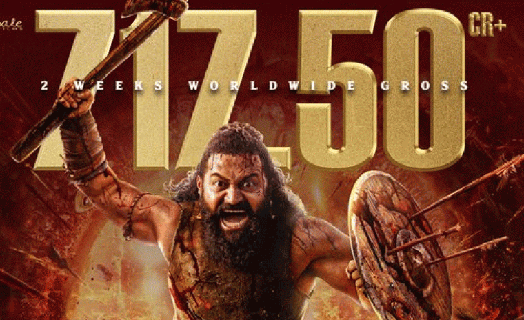 కాంతారాకు అత్యంత ఎదురుచూస్తున్న ప్రీక్వెల్ 'కాంతారా చాప్టర్ 1' ఇటీవలే విడుదల అయ్యింది. రిషబ్ శెట్టి నటించి మరియు దర్శకత్వం వహించిన ఈ సినిమా సంచలనాత్మక సమీక్షలను అందుకుంటుంది. ఈ చిత్రం బాక్సాఫీస్ వద్ద సెన్సేషన్ ని సృష్టిస్తుంది. రుక్మిని వాసంత్ ఈ సినిమాలో మహిళా ప్రధాన పాత్రలో నటిస్తుంది. ఈ సినిమాలో గుల్షన్ దేవయ్య విలన్ పాత్రలో, జయ రామ్ ముఖ్య పాత్రలో కనిపించనున్నారు. తాజాగా మూవీ మేకర్స్ ఈ సినిమా విడుదలైన రెండు వారాలలో వరల్డ్ వైడ్ గా 717.50 కోట్ల గ్రాస్ ని రాబట్టినట్లు ప్రకటించారు. ఈ విషయాన్ని తెలియజేసేందుకు ప్రొడక్షన్ హౌస్ సోషల్ మీడియాలో సరికొత్త పోస్టర్ ని విడుదల చేసింది. హోంబేల్ ఫిల్మ్స్ నిర్మించిన ఈ సినిమాకి అజనీష్ లోక్నాథ్ యొక్క శక్తివంతమైన సౌండ్ట్రాక్ ఉంది.