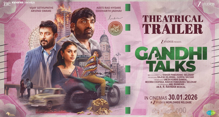 విజయ్ సేతుపతి, అరవింద్ స్వామి, అదితీ రావు హైదరీ ప్రధాన పాత్రల్లో నటించిన ప్రయోగాత్మక సైలెంట్ మూవీ ‘గాంధీ టాక్స్’ ఇప్పుడు ఓటీటీలోకి రానుంది. ఏ.ఆర్. రెహమాన్ అందించిన సంగీతంతో సినిమా జనవరి 30న థియేటర్లలో విడుదలై, మిశ్రమ స్పందనను సొంతం చేసుకుంది.కిశోర్ పాండురంగ బెలెకర్ దర్శకత్వంలో రూపొందిన ఈ సినిమా మూడు సంవత్సరాలుగా గోవాలోని ఇంటర్నేషనల్ ఫిల్మ్ ఫెస్టివల్ (IFFI)లో ప్రదర్శించబడింది. ఇందులో మాటలు లేవు, కేవలం సంగీతం, హావభావాలే ప్రధానంగా ఉంటాయి. ఏ.ఆర్. రెహమాన్ అందించిన బ్యాక్గ్రౌండ్ మ్యూజిక్ సినిమాకు ప్రధాన ఆకర్షణ.డిజిటల్ హక్కులను ప్రముఖ ఓటీటీ ప్లాట్ఫామ్ ZEE5 పొందింది. సోషల్ మీడియాలో వచ్చిన ప్రచార ప్రకారం, ఫిబ్రవరి 26 నుంచి ఈ సినిమా స్ట్రీమింగ్ మొదలు కాగలదని సమాచారం ఉంది. అధికారిక ప్రకటన త్వరలోనే రానుందని కూడా తెలుస్తోంది.కథలో డబ్బు, అవినీతి మనుషుల జీవితాలను ఎలా ప్రభావితం చేస్తాయో చూపించారు. గాంధీ బొమ్మలు ఉన్న కరెన్సీ నోట్లు వ్యక్తుల నిజాయితీని ఎలా మారుస్తాయో ప్రధానాంశంగా చూపించబడింది. లంచం ఇవ్వలేక ఉద్యోగం రాని యువకుడు విజయ్ సేతుపతి, అవినీతి వల్ల సామ్రాజ్యం కూలిపోతున్న సంపన్నుడు అరవింద్ స్వామి, వీరి ప్రపంచాలు కలిసినప్పుడు ఎదురయ్యే పరిణామాలు కథలో ప్రధానంగా ఉంటాయి. సిద్ధార్థ్ జాదవ్, మహేష్ మంజ్రేకర్ వంటి నటులు కూడా కీలక పాత్రల్లో కనిపించారు.థియేటర్లలో మిశ్రమ స్పందన పొందిన ఈ ప్రయోగాత్మక సైలెంట్ మూవీ ZEE5 ఓటీటీలో ఎలాంటి ప్రతిస్పందన పొందుతుందో చూడాల్సి ఉంది. స్ట్రీమింగ్ డేట్ పై అధికారిక ప్రకటన త్వరలో రానుందని అంచనా.