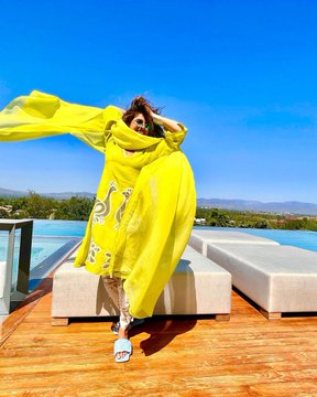 గోబల్ స్టార్ ప్రియాంక చోప్రా సన్ ఫ్లవర్ లా మారింది. పసుపు రంగు | కుర్తా, పైజామా మరియు దుపట్టా ధరించి సూర్యుని ముద్దు పెట్టుకుంటూ... హ్యాపీ మూడ్ లో ఉన్న కొన్ని ఫోటోలను సోషల్ మీడియాలో షేర్ చేసింది. వాటికి 'సూర్యుడు సరిగా తాకినప్పుడు' అనే కామెంట్ పెట్టింది. మరోవైపు, శుక్రవారం ప్రియాంక మొగుడు నిక్ జోనాస్ కూడా పచ కలర్ చొక్కా, తో కనిపించాడు. దీంతో ఎలో ఫ్యామిలీ అంటూ నెటిజన్స్ కామెంట్స్ | చేస్తున్నారు. ఎప్పుడు జంటగా కనిపిస్తూ..రొమాన్స్ లో మునిగి పోయే ప్రియాంక నిక్.. ఈసారి మాత్రం ఎవరికి వారే స్పెషల్గా కనిపించడం విశేషం.