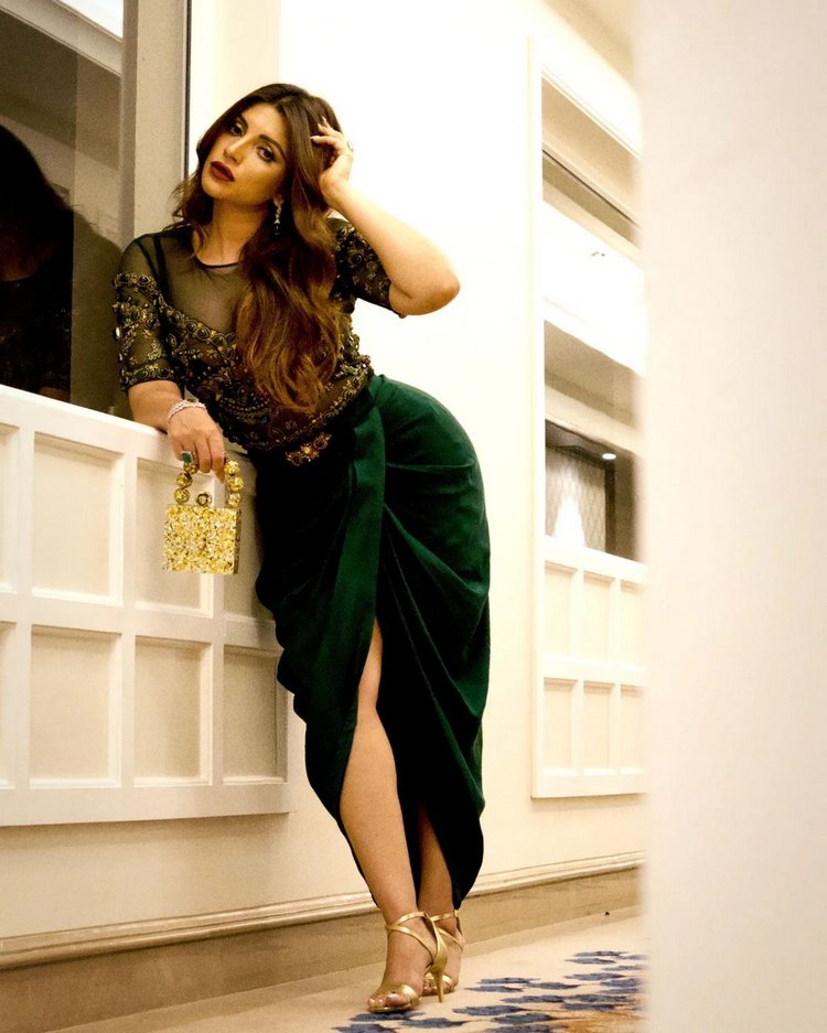 ఇటీవల, షామా తన ఫోటోను షేర్ చేసింది, అందులో ఆమె స్టైలిష్ గ్రీన్ కలర్ డ్రెస్లో కనిపిస్తుంది. భారీ ఎంబ్రాయిడరీతో ఈ పారదర్శక హై థాయ్ స్లిట్ డ్రెస్లో, షామా నుండి కళ్ళు తీయడం చాలా కష్టంగా మారింది. నటి తన కొత్త రూపాన్ని ప్రదర్శిస్తూ పోజులిచ్చింది. ఈ లుక్తో, ఆమె గోల్డెన్ కలర్ హైహీల్స్ క్యారీ చేసింది.షామా తన రూపాన్ని పూర్తి చేయడానికి ముదురు లిప్స్టిక్తో సూక్ష్మమైన మేకప్ చేసింది. ఆమె తన జుట్టుకు ఉంగరాల రూపాన్ని ఇవ్వడం ద్వారా తెరిచి ఉంచింది.