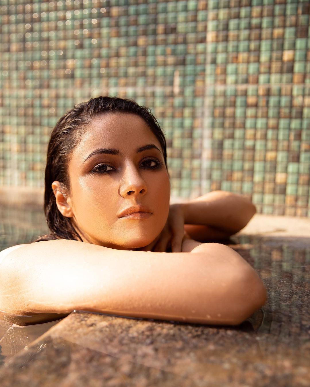 పంజాబీ బ్యూటీ షెహనాజ్ గిల్ మ్యూజిక్ వీడియోస్ కి కేరాఫ్ అడ్రస్ గా మారింది. బోలేడు వీడియోలు చేసింది. ఏడాదిలో ఇరవైకి పైనే ఆమె మ్యూజిక్ వీడియోస్ ఉంటాయి. ఇక బిగ్ బాస్ సీజన్-13 తో షెహనాజ్ మరింత పాపులర్ అయింది. అదే సమయంలో బాలీవుడ్ కండల వీరుడు సల్మాన్ కు దగ్గరైంది. వీరిద్దరి మధ్య , ఏదో సాగుతుందనే ప్రచారం బాలీవుడ్ లో జోరుగా జరుగుతుంది. సలాన్ కనిపిసే చాలు.. ఈ ముద్దుగుమ్మ కంట్రోల్ తప్పుతుంది. ఆయన మీద పడిపోయి ముద్దులు ఇస్తుంటుంది. దానికి ఫలితం కూడా దక్కింది. సల్మాన్ తాజా సినిమా 'కభీ ఈద్ కభీ దీపావళి'లో ఓ కీలక పాత్ర కోసం గిల్ ఎంపికైంది. తాజాగా ఈ ముద్దుగుమ్మ స్విమ్మింగ్ పూల్ లో రెచ్చిపోయింది. దానికి సంబంధించిన ఫోటోలను అభిమాను, లతో పంచుకుంది.
