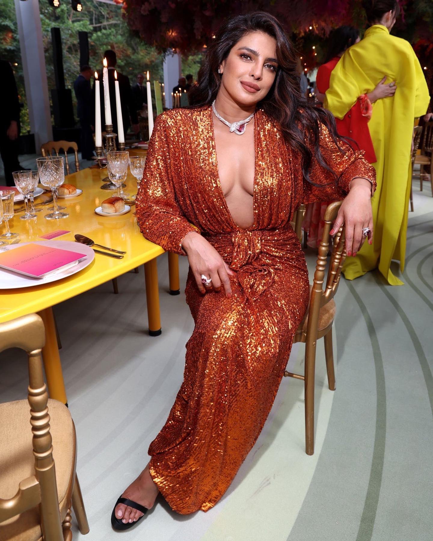 పారిస్ లో జరిగిన బళ్లారీ ఈవెంట్ లో గ్లోబల్ స్టార్ ప్రియాంక చోప్రా సందడి చేసింది. హాలీవుడ్ స్టార్స్ అన్నే హాత్వే, లిసా మనోబస్ లతో 'Eden the Garden of Wonders' జ్యువెలర్స్ ప్రదర్శ నలో పాల్గొంది. ఈ సందర్భంగా పింకీ అందాల ప్రదర్శన హాట్ టాపిక్ గా మారింది. లాంగ్ లెన్ గౌనులో పై అందాలను పూరా ఓపెన్ చేసింది. అంతేకాదు.. కుర్చీలో కూర్చొని, నిల్చోని .. వివిధ భంగిమలో గ్రామర్ షో చేసింది. దానికి సంబంధించిన ఫోటోలు, వీడియోలు నెట్టింట్లో చక్కర్లు కొడుతు న్నాయి. హాలీవుడ్ జనాలు సైతం పరేషాన్ అయ్యేలా ప్రియాంక షోయింగ్ ఉందని చెప్పవచ్చు.