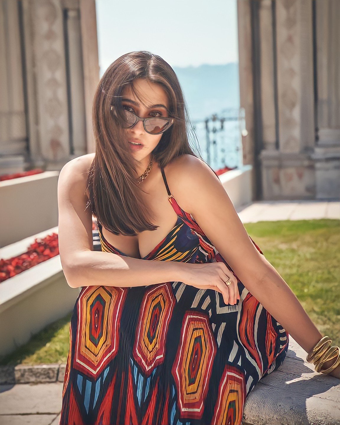 సరే, తన సినిమాలే కాకుండా, సారా తన లుక్స్ కారణంగా కూడా చాలా చర్చలో ఉంది. ఈ రోజుల్లో ఆమె తన బోల్డ్ లుక్స్తో జనాలను ఉర్రూతలూగిస్తోంది. సారా కూడా సోషల్ మీడియా ద్వారా తన అభిమానులతో కనెక్ట్ అవుతుంది. అటువంటి పరిస్థితిలో, ఆమె తరచుగా తన వ్యక్తిగత మరియు వృత్తి జీవితంలోని సంగ్రహావలోకనాలను చూపుతూ ఉంటుంది. ఇప్పుడు మళ్లీ సారా చిత్రాలు అభిమానుల గుండె చప్పుడును పెంచుతున్నాయి. నిజానికి, నటి ఇటీవల ఒక అద్భుతమైన ఫోటోషూట్ పూర్తి చేసింది.వీటిలో, నటి డీప్ నెక్ ప్రింటెడ్ దుస్తులు ధరించి చూడవచ్చు. తన రూపాన్ని పూర్తి చేయడానికి, ఆమె లైట్ మేకప్ చేసి, తన జుట్టును తెరిచి ఉంచింది.