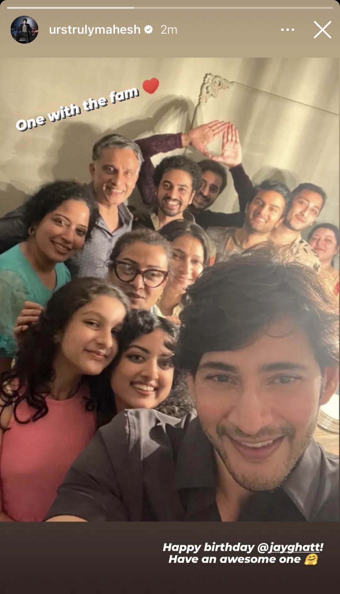 మన టాలీవుడ్ సూపర్ స్టార్ మహేష్ బాబు హీరోగా ప్రస్తుతం చిన్న వెకేషన్ లో ఉన్న సంగతి తెలిసిందే. అలాగే తన భారీ హిట్ “సర్కారు వారి పాట” సినిమా సక్సెస్ తో మరింత ఎనర్జిటిక్ గా ఉన్నారు. అయితే ఇప్పుడు మహేష్ ఈ బ్రేక్ లో ఉండగా ఈ సమయాన్ని తన ఫ్యామిలీ తో ఎంతో ఆహ్లాదంగా గడుపుతున్నారు. మరి వీరు అంతా కూడా ఘట్టమనేని రమేష్ బాబు తనయుడు జయ కృష్ణ పుట్టినరోజు వేడుకలను జరుపుకున్నారు.మరి ఈ హ్యాపీ మూమెంట్ లో మహేష్ బాబు స్వయంగా వారి అందరితో కలిసి ఓ కూల్ సెల్ఫీ తీసుకోవడం ఆసక్తిగా ఉంది. తన కుటుంబం ఆనందం అంతా తన లోనే ఉంది అనే స్థాయిలో మహేష్ ఈ సెల్ఫీ లో కనిపిస్తున్నారు. ఇది మాత్రం మహేష్ ఫ్యాన్స్ కి డెఫినెట్ గా ఒక బెస్ట్ పిక్ గా నిలుస్తుందని చెప్పాలి. ఇక ఇదిలా ఉండగా మహేష్ అయితే నెక్స్ట్ దర్శకుడు త్రివిక్రమ్ తో తమ హ్యాట్రిక్ సినిమా కోసం రెడీ అవుతున్నారు.