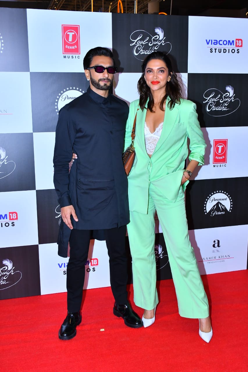 స్టార్ కపుల్స్ దీపికా పదుకొనె రణ్ వీర్ సింగ్ మరోసారి తమ ఫ్యాషన్ టేస్ట్ చూపించారు. అమీర్ ఖాన్ లేటెస్ట్ సినిమా 'లాల్ సింగ్ చడ్డా' గురువారం ప్రేక్షకుల ముందుకొ చ్చింది. మిక్సిడ్ టాక్ సొంతం చేసుకుంది. అయితే గురువారం రాత్రి ముంబైలో జరిగిన ఈ సినిమా ప్రీమియర్ షోకు బాలీవుడ్ ప్రముఖులు హాజరయ్యారు. జంటగా వచ్చిన దీపికా-రణ్ వీర్ స్పెషల్ అట్రాక్షన్ గా నిలిచారు. ఇద్దరు కలర్ ఫుల్ సూట్ లో కనిపించారు. దానికి సంబంధించిన ఫోటోలు, వీడియోలు సోషల్ మీడియాలో వైరల్ గా మారాయి.