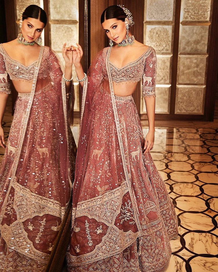 తారా అభిమానులు ప్రపంచవ్యాప్తంగా ఉన్నారు, ఆమెతో కనెక్ట్ అవ్వడానికి సోషల్ మీడియాలో చాలా యాక్టివ్గా ఉంటుంది. తరచుగా ఆమె తన లుక్ని అభిమానులతో పంచుకుంటుంది. ఈసారి తన దేశీ అవతార్ని చూపించింది . తాజా ఫోటోషూట్లో తార భారీ లెహంగా ధరించి కనిపించింది. ఈ లుక్ని చాలా అందంగా క్యారీ చేసింది.తార నిగనిగలాడే సూక్ష్మమైన మేకప్తో తన లుక్ను పూర్తి చేసింది. ఆమె దానితో లేత ఆకుపచ్చ మరియు ముత్యాల ఆభరణాలు ధరించింది. అదే సమయంలో, నటి బన్ను తయారు చేయడం ద్వారా తన ప్రజలను కట్టిపడేసింది. తన జుట్టులో అలంకరించుకున్న గజ్రా ఈ లుక్ని మరింత పెంచుతోంది.