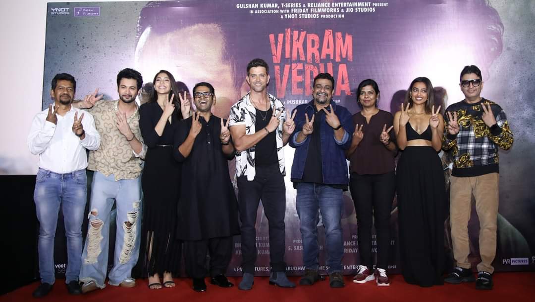 సైఫ్ అలీఖాన్, హృతిక్ రోషన్ కీలక పాత్రల్లో నటించిన రాధికా ఆప్టే సినిమా విక్రమ్ వేద విడుదల అవుతుందని ప్రకటించినప్పటి నుంచి అభిమానులు ఆత్రుతగా ఎదురుచూస్తున్నారు. విక్రమ్ వేద ట్రైలర్ ఒక రోజు క్రితం విడుదలైంది, ఈ సినిమా ఫస్ట్ లుక్ మరియు టీజర్ చాలా సంచలనం సృష్టించాయి. టీజర్ను ఆవిష్కరించడానికి ముంబైలో జరిగిన ఈవెంట్లో, చిత్ర నిర్మాతలు స్టైల్గా వచ్చారు. లాంచ్కి రాధిక కూడా వచ్చారు. ఆమె నల్లటి క్రాప్ టాప్ మరియు ఫ్లేర్డ్ ప్యాంటుతో అబ్బురపరిచింది. రాధిక ఒక నల్లటి జత హై-వెయిస్ట్ ప్లీటెడ్ ప్యాంట్తో పాటు వి-నెక్ స్ట్రాపీ బ్లౌజ్ను ధరించింది.