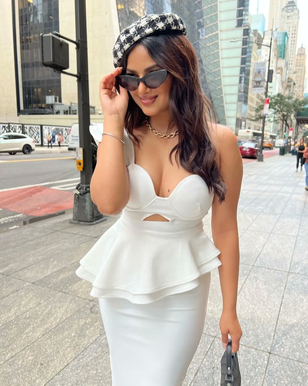 హర్నాజ్ సోషల్ మీడియాలో చాలా యాక్టివ్గా ఉండటం ప్రారంభించింది . ఆమె సిజ్లింగ్ అవతార్ తరచుగా అతని ఇన్స్టాగ్రామ్ పేజీలో కనిపిస్తుంది. అలాంటి పరిస్థితుల్లో ఇప్పుడు వీరి ఫోటోల కోసం అభిమానులు కూడా ఆసక్తిగా ఎదురుచూస్తున్నారు. ఇప్పుడు మరోసారి హర్నాజ్ చర్యలు అభిమానుల గుండె చప్పుడును పెంచాయి. తాజా చిత్రాలలో, నటి తెల్లటి దుస్తులలో కనిపిస్తుంది.ఈ చిత్రాలలో, హర్నాజ్ న్యూయార్క్ వీధుల్లో నడుస్తూ కనిపించింది . ఇక్కడ ఆమె డీప్ నెక్ స్కిన్ ఫిట్ వైట్ డ్రెస్ వేసుకుంది. దీనితో పాటు, ఆమె బ్లాక్ అండ్ వైట్ చెక్ ప్రింట్ టోపీని కూడా ధరించింది.
