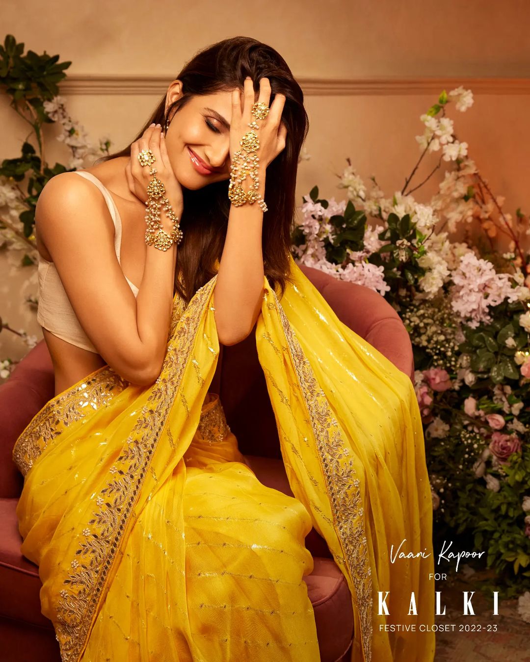 బాలీవుడ్ నటి వాణి కపూర్ చాలా తక్కువ సమయంలో పరిశ్రమకు తనని తాను ఎలాంటి పాత్రకైనా మలచుకోగలనని నిరూపించుకుంది. వాణి తన అద్భుతమైన నటనతో తనకంటూ ప్రత్యేక గుర్తింపు తెచ్చుకుంది. సినిమాలే కాకుండా, ఆమె తన అందం మరియు స్టైలిష్ లుక్ గురించి కూడా చాలా చర్చలలో ఉంది. ఆమె నటనకే కాదు లుక్స్కి కూడా జనాలు ఫిదా అవుతున్నారు.తన చిత్రాలతో పాటు, వాణి తన అందం మరియు స్టైలిష్ లుక్ గురించి కూడా చాలా చర్చలో ఉంది. నేడు ప్రపంచవ్యాప్తంగా వాక్ ప్రేమికులు ఉన్నారు, వారు ఆమెని చూడాలని తహతహలాడుతున్నారు. గత కొన్ని రోజులుగా ఆమె బోల్డ్ ఫోటోషూట్లతో వార్తల్లో నిలుస్తోంది. ఇప్పుడు మళ్లీ వాణి తన తాజా ఫోటోషూట్ యొక్క సంగ్రహావలోకనం చూపించింది.నటి సిగ్గుపడుతూ కనిపించిందిఫోటోలో, వాణి పసుపు రంగు చీర ధరించి కనిపిస్తుంది. దీంతో ఆమె తెల్లటి బ్లౌజ్ను జత చేసింది.