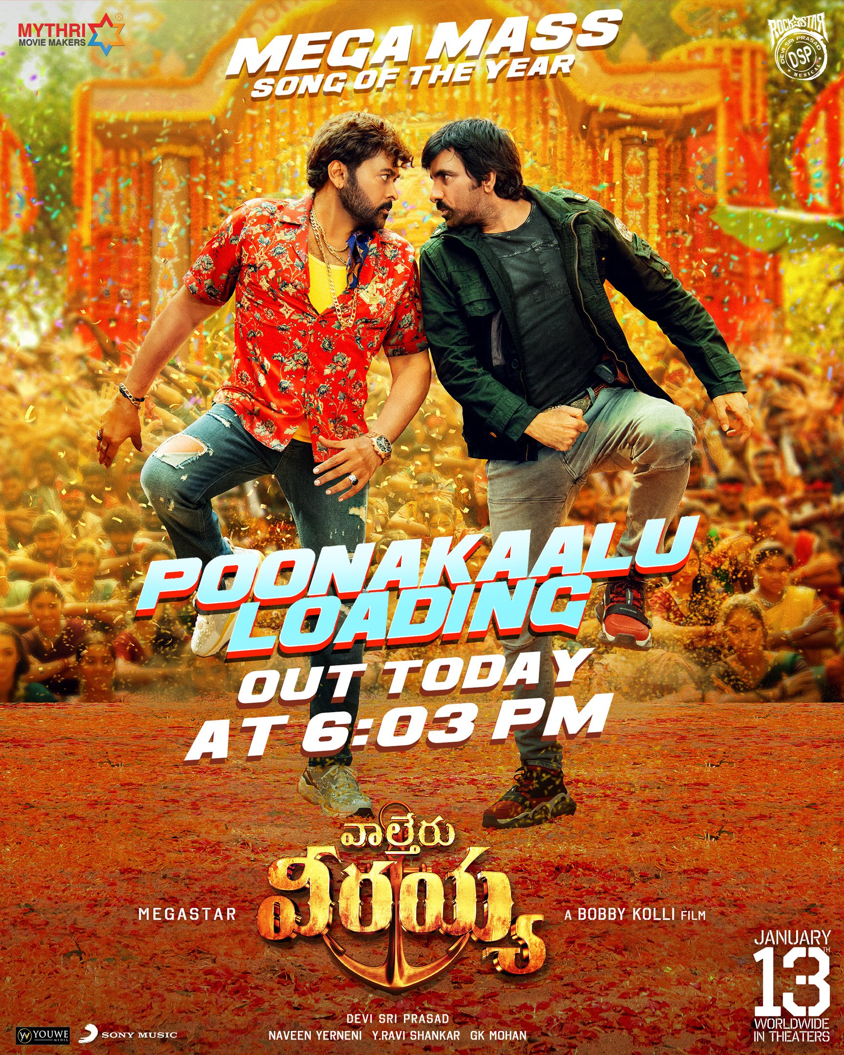 మెగాస్టార్ చిరంజీవి-బాబీ కాంబోలో వస్తోన్న చిత్రం ‘వాల్తేరు వీరయ్య’. ఈ సినిమాలో మాస్ మహారాజ్ రవితేజ కీలక పాత్ర పోషిస్తున్నారు. తాజాగా ఈ చిత్రానికి సంబంధించి క్రేజీ అప్ డేట్ వచ్చేసింది. అభిమానులు ఎప్పుడెప్పుడా అని ఎదురు చూస్తున్న మాస్ కాంబినేషన్ సాంగ్ నేడు రాబోతోంది. ఇప్పటికే ఈ సినిమాలోని 3 పాటలు మెగా ఫ్యాన్స్ ను ఉర్రూతలూగిస్తున్నాయి. అయితే మేకర్స్ నిన్ననే అనౌన్స్ చేయగా ఇప్పుడు ఈ సాంగ్ ఎప్పుడు రిలీజ్ అవుతుంది అనేది టైం రివీల్ చేశారు. అయితే ఈరోజు సాయంత్రం 6 గంటల 3 నిమిషాలకి అయితే రిలీజ్ చేస్తున్నట్టుగా మేకర్స్ కన్ఫర్మ్ చేశారు.