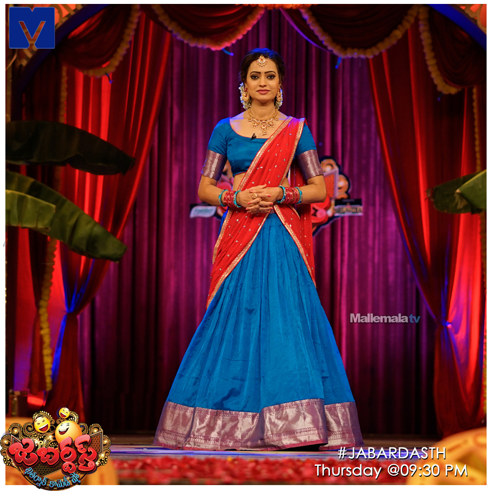 జబర్దస్త్` కొత్త యాంకర్ సౌమ్య రావు శారీలో హోయలు పోతూ కుర్రాళ్ల మతిపోగొడుతుంది. తాజాగా కాస్త రూట్ మార్చింది. తన అందాలను మరింతగా ఆవిష్కరించే ప్రయత్నం చేస్తుంది. `జబర్దస్త్` యాంకర్ సౌమ్య రావు తాజాగా బ్లూ లెహంగా, రెడ్ వోణిలో హోయలు పోయింది. ఫ్రంట్ నుంచి సైడ్ యాంగిల్స్ లో పోజులిచ్చింది. ఫ్రంట్లో నడుము అందాలను చూపించింది. నాభిని శారీతో కవర్ చేసి సైడ్లో నడుము మడతలను చూపించింది కిల్లింగ్ లుక్స్ కి తోడు వయ్యారాలు ఒలకబోస్తూ ఈ బ్యూటీ పంచుకున్న లేటెస్ట్ ఫోటోలు సోషల్ మీడియాలో వైరల్ అవుతున్నాయి. కుర్రాళ్లకి మైండ్ బ్లాక్ చేస్తున్నాయి. ఫెస్టివల్ వైబ్ని తీసుకొస్తూ కలర్ ఫుల్ అందాలతో నెట్టింట రచ్చ చేస్తుంది సౌమ్య రావు.