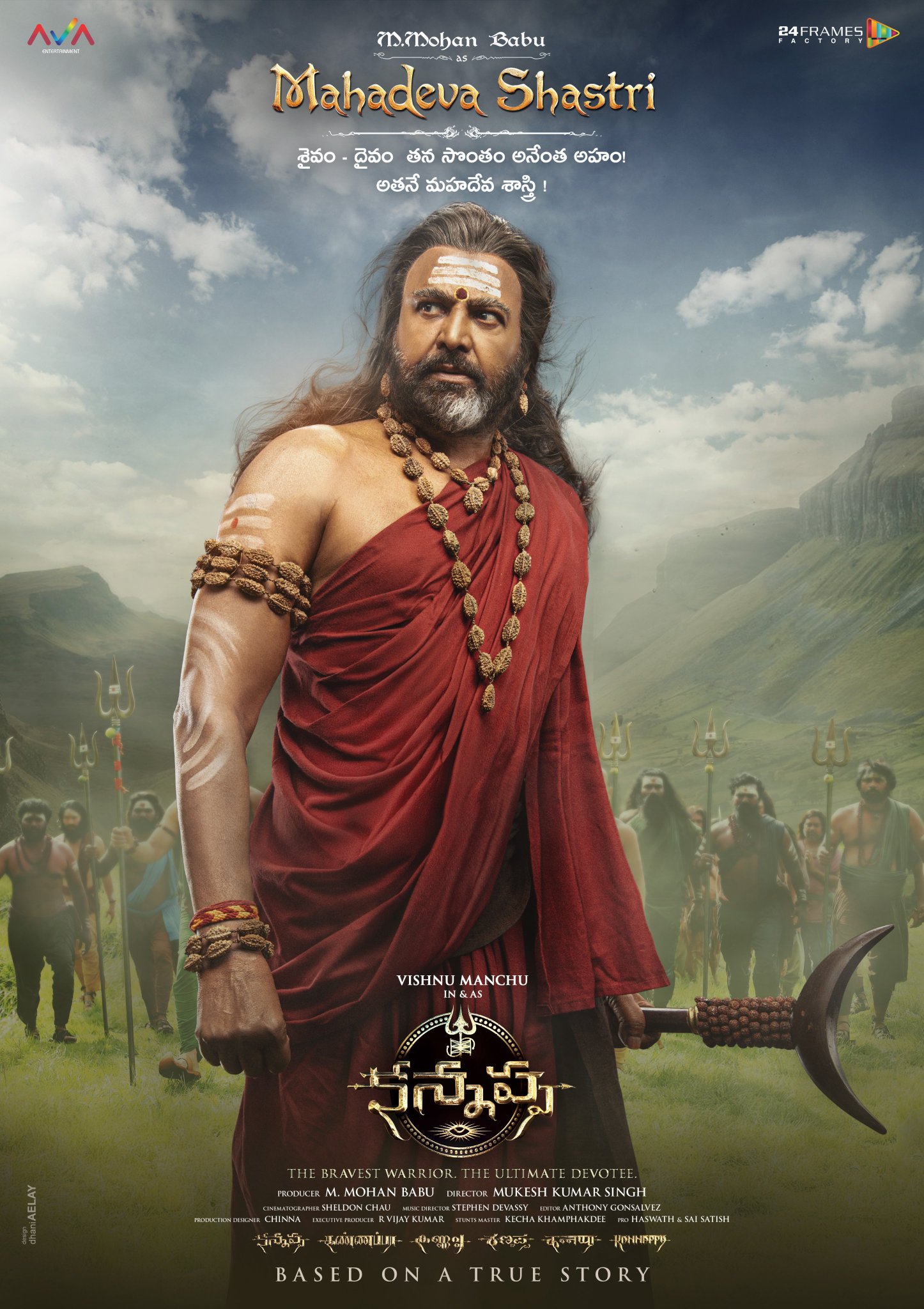 మంచు ఫ్యామిలీ నుంచి వస్తున్న మోస్ట్ ప్రెస్టీజియస్ ప్రాజెక్ట్ కన్నప్ప. దాదాపు రూ.100 కోట్ల బడ్జెట్తో వస్తున్న ఈ సినిమాను కలెక్షన్ కింగ్ మంచు మోహన్ బాబు నిర్మిస్తుండగా.. మంచు విష్ణు కథానాయకుడిగా నటిస్తున్నాడు. ఈ చిత్రబృందం తాజాగా మోహన్ బాబు ఫస్ట్లుక్ను విడుదల చేసింది. ఈ సినిమాలో మోహన్ బాబు మహదేవ్ శాస్త్రి అనే పవర్ఫుల్ రోల్లో కనిపించబోతున్నట్లు తెలిపింది.
