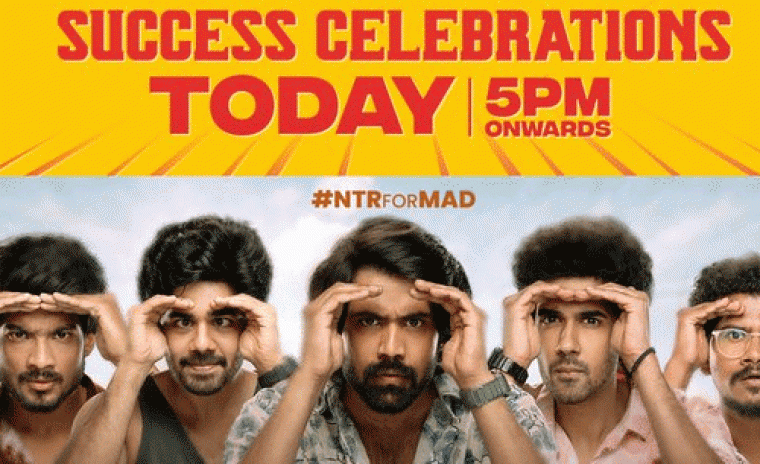 యూత్ ఎంటర్టైనర్ 'మాడ్ స్క్వేర్' ఇటీవలే విడుదలై సానుకూల సమీక్షలను అందుకుంది. ఈ చిత్రంలో నార్నే నితిన్, సంగీత సోభన్, రామ్ నితిన్ మరియు విష్ణు ఓయి ప్రధాన పాత్రల్లో నటించారు. కల్యాణ్ శంకర్ ఈ చిత్రానికి దర్శకత్వం వహించారు. ఈ చిత్రం చాలా ప్రాంతాల్లో కేవలం నాలుగు రోజుల్లోనే బ్రేక్ఈవెన్ మైలురాయిని సాధించి రికార్డు ని సృష్టిస్తుంది. తాజాగా ఇప్పుడు చిత్ర బృందం ఈ సినిమా సక్సెస్ అయినా సందర్భంగా గ్రాండ్ సక్సెస్ పార్టీని నిర్వహిస్తున్నారు. ఈ ఈవెంట్ ఈరోజు సాయంత్రం 5 గంటల నుండి ప్రారంభం కానుంది. తాజాగా ఇప్పుడు ఈ సక్సెస్ ఈవెంట్ కి టాలీవుడ్ యంగ్ టైగర్ జూనియర్ ఎన్టీఆర్ చీఫ్ గెస్ట్ గా హాజరుకానున్నట్లు సమాచారం. ఈ విషయాన్ని తెలియజేసేందుకు ప్రొడక్షన్ హౌస్ సోషల్ మీడియాలో సరికొత్త పోస్టర్ ని విడుదల చేసింది. ఈ చిత్రంలో మురళి ధర గౌడ్, రాఘు బాబు, సత్యం రాజేష్, సునీల్, ఆంటోనీ, మరియు ప్రియాంక జావ్కర్ సహాయక పాత్రలలో ఉన్నారు. సూర్యదేవర నాగవంశీ ఈ చిత్రాన్ని సమర్పిస్తున్నారు. భీమ్స్ సెసిరోలియో ఈ చిత్రం యొక్క సంగీత స్వరకర్త మరియు థమన్ బ్యాక్ గ్రౌండ్ స్కోర్ అందిస్తున్నారు. షమ్దాట్ సైనూదీన్ చేత సినిమాటోగ్రఫీ మరియు నవీన్ నూలి ఎడిటింగ్ ని నిర్వహించారు. ఫార్చ్యూన్ ఫోర్ సినిమాస్ మరియు స్రికారా స్టూడియోలతో పాటు సీతారా ఎంటర్టైన్మెంట్స్ ఈ సినిమాని నిర్మించింది.