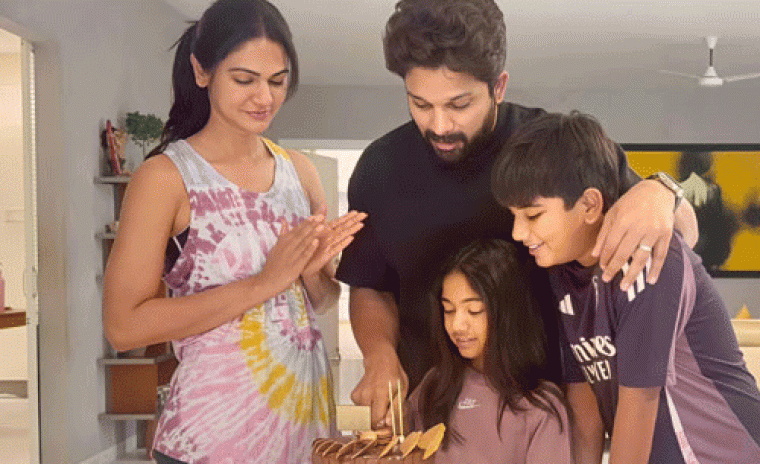 టాలీవుడ్ ఐకాన్ స్టార్ అల్లు అర్జున్ నేడు తన 43వ పుట్టినరోజును జరుపుకుంటున్నారు. అల్లు అర్జున్ తన కుటుంబం భార్య స్నేహా రెడ్డి మరియు పిల్లలు అల్లు అయాన్ మరియు అల్లు అర్హాతో కలిసి పుట్టినరోజు జరుపుకున్నాడు. కేక్ కటింగ్ వేడుక ని అల్లు స్నేహ రెడ్డి తన ఇన్స్టాగ్రామ్ స్టోరీలో పంచుకున్నారు. ఈ చిత్రం సోషల్ మీడియాలో త్వరగా వైరల్ అయ్యింది. వర్క్ ఫ్రంట్ లో చూస్తే విజయవంతమైన దర్శకుడు అట్లీతో జతకట్టడం మరియు ప్రతిష్టాత్మక సన్ పిక్చర్స్ మద్దతుతో అల్లు అర్జున్ ఒక సరికొత్త సినిమా ప్రయాణాన్ని ప్రారంభించడానికి సిద్ధంగా ఉన్నాడు. ఎంతో ఎదురుచూస్తున్న ఈ ప్రాజెక్ట్ యొక్క ప్రకటన నేడు జరిగింది. ఇది అభిమానులను ఉత్సాహంతో నింపింది. కొత్త చిత్రం చుట్టూ ఉన్న సంచలనం ఆకాశంలో ఉంది. ఈ చిత్రం గొప్ప స్థాయిలో అమర్చబడిందని టాక్. ఈ చిత్రానికి యువ తమిళ సంగీత దర్శకుడు సాయి అభ్యంక్కర్ సౌండ్ట్రాక్ను స్కోర్ చేయనున్నట్లు సమాచారం. ఈ ప్రాజెక్ట్ కి సంబందించిన మరిన్ని వివరాలు త్వరలో వెల్లడి కానున్నాయి.