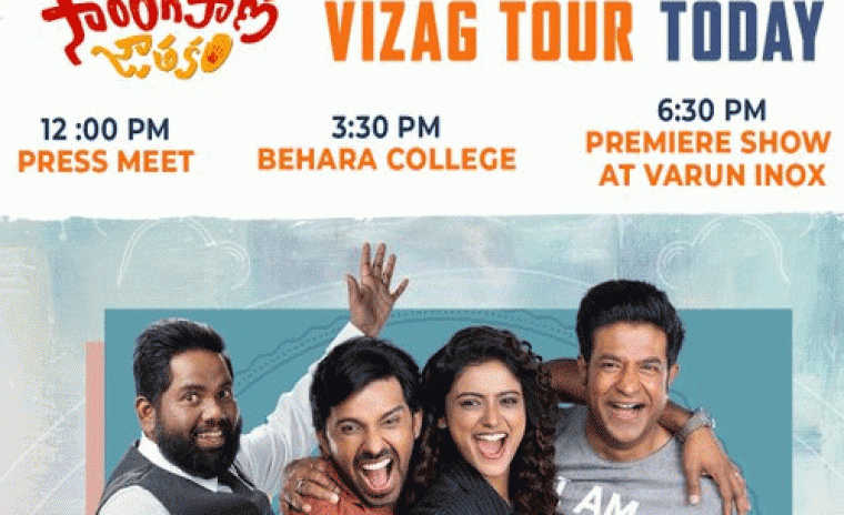 దర్శకుడు మోహనకృష్ణ ఇంద్రగంటితో హాస్యనటుడి నుండి హీరో మారిన ప్రియదర్శి 'సారంగపాణి జాతకం' అనే హాస్య నాటకం కోసం జతకట్టిన సంగతి అందరికి తెలిసిందే. ఈ చిత్రం 'జెంటిల్మన్', 'సమ్మోహనం' తర్వాత ఇంద్రగంటి, ప్రసాద్ల కలయికలో వస్తున్న మూడో చిత్రంగా నిలిచింది. ఈ చిత్రంలో రూప కొడువాయూర్ మహిళా ప్రధాన పాత్రను పోషించారు. ఇటీవలే విడుదల చేసిన ఈ సినిమా ట్రైలర్ కి సాలిడ్ రెస్పాన్స్ లభించింది. తాజాగా మూవీ మేకర్స్ ఈ సినిమా ప్రమోషనల్ టూర్ లో భాగంగా చిత్ర బృందం ఈరోజు వైజాగ్ కి వెళ్లనుంది. ఈరోజు మధ్యాహం 12 గంటలకి ప్రెస్ మీట్, 3:30 గంటలకి బెహరా కాలేజీ కి వెళ్లనున్నారు మరియు సాయంత్రం 6:30 గంటలకి ఈ సినిమా యొక్క స్పెషల్ ప్రీమియర్ షోని వరుణ్ ఇనాక్ లో వీక్షించనున్నారు. ఈ విషయాన్ని మేకర్స్ సోషల్ మీడియాలో స్పెషల్ పోస్టర్ ని విడుదల చేసి ప్రకటించారు. వివేక్ సాగర్ సంగీతం సమకూర్చగా, పిజి విందా ఫోటోగ్రఫీ డైరెక్టర్ గా ఉన్నారు. ఈ ఫ్యామిలీ ఎంటర్టైనర్ లో వెన్నెల కిషోర్, వైవా హర్ష, నరేష్ వికె, తనికెళ్ల భరణి మరియు శ్రీనివాస్ అవసరాల కీలక పాత్రలలో నటిస్తున్నారు. శ్రీదేవి మూవీస్ పతాకంపై శివలెంక కృష్ణ ప్రసాద్ ఈ సినిమాని నిర్మించారు. ఈ చిత్రం ఏప్రిల్ 25న విడుదల కానుంది.
