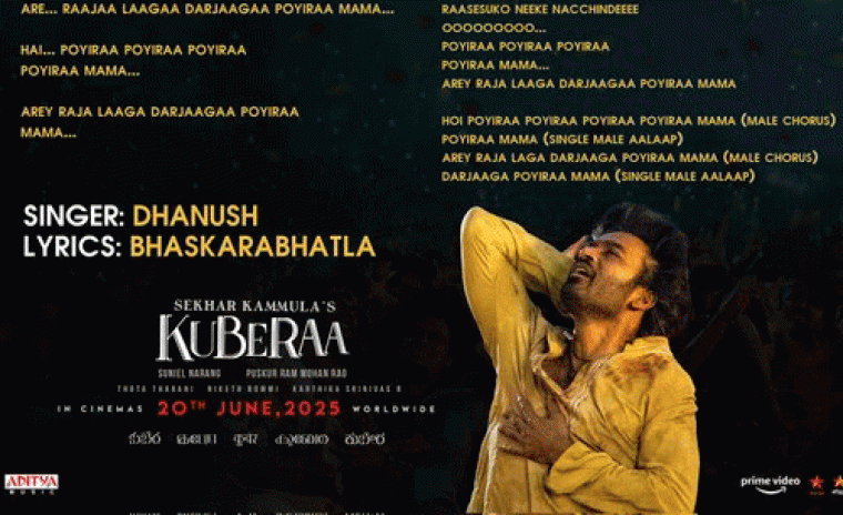 శేఖర్ కమ్ముల దర్శకత్వంలో కోలీవుడ్ నటుడు ధనుష్ ఒక ప్రాజెక్ట్ ని ప్రకటించిన సంగతి అందరికి తెలిసిందే. ఈ రాబోయే తెలుగు సినిమాకి 'కుబేర' అనే టైటిల్ ని మూవీ మేకర్స్ లాక్ చేసారు. ఈ చిత్రంలో రష్మిక మందన్న మహిళా ప్రధాన పాత్రలో నటిస్తుంది. కుబేర 120 కోట్ల భారీ బడ్జెట్తో అత్యంత ఖరీదైన ప్రాజెక్ట్గా చెప్పబడుతోంది. ఈ సినిమా యొక్క ఫస్ట్ సింగల్ ని పోయిరా మామ అనే టైటిల్ తో విడుదల చేసారు. దేవి శ్రీ ప్రసాద్ కంపోస్ చేసిన మరియు ధనుష్ పడిన ఈ సాంగ్ తెలుగు, తమిళం, హిందీ, మలయాళం మరియు కన్నడలో విడుదల అయ్యింది. తాజాగా మూవీ మేకర్స్ ఈ సాంగ్ యొక్క తెలుగు వెర్షన్ లిరికల్ షీట్ ని మేకర్స్ విడుదల చేసారు. ఈ విషయాన్ని తెలియజేసేందుకు ప్రొడక్షన్ హౌస్ సోషల్ మీడియాలో సరికొత్త పోస్టర్ ని విడుదల చేసింది.ఈ చిత్రంలో నాగార్జున, జిమ్ సర్భ్ కీలక పాత్రల్లో నటించారు. ఈ చిత్రానికి సంగీతం దేవి శ్రీ ప్రసాద్, కెమెరా హ్యాండిల్ నికేత్ బొమ్మి, ఎడిటింగ్ కార్తీక శ్రీనివాస్ అందిస్తున్నారు. శ్రీ వెంకటేశ్వర సినిమాస్ ఎల్ఎల్పి మరియు అమిగోస్ క్రియేషన్స్ ప్రైవేట్ లిమిటెడ్ పతాకాలపై సునీల్ నారంగ్ మరియు పుస్కుర్ రామ్ మోహన్ రావు భారీ బడ్జెట్తో భారీ స్థాయిలో ఈ చిత్రాన్ని నిర్మిస్తున్నారు. చివరి నిర్మాణ దశలో ఉన్న ఈ చిత్రం జూన్ 20న తమిళం, తెలుగు, హిందీ భాషల్లో విడుదల కానుంది.