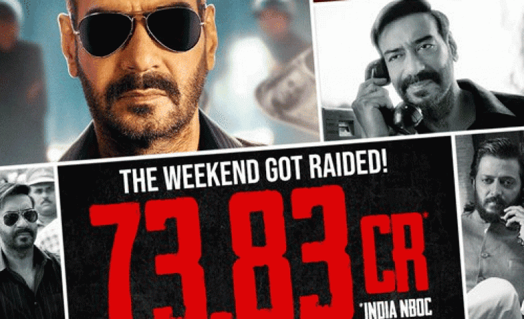 బాలీవుడ్ నటుడు అజయ్ దేవగణ్ మరియు రితేష్ దేశముఖ్ ప్రధాన పాత్రలో నటించిన 'రైడ్ 2' చిత్రం మే 1, 2025న విడుదల అయ్యింది. ఈ సినిమా మిశ్రమ సమీక్షలతో బాక్స్ఆఫీస్ వద్ద ప్రారంభమైంది. రాజ్ కుమార్ గుప్తా దర్శకత్వం వహిస్తున్న ఈ చిత్రం 2018 హిట్కు ఎంతో ఆసక్తిగా ఎదురుచూస్తున్న సీక్వెల్. తాజాగా ఇప్పుడు మేకర్స్ ఈ సినిమా విడుదలైన నాలుగు రోజులలో ఇండియా వైడ్ గా 73.83 కోట్ల గ్రాస్ ని వసూలు చేసినట్లు ప్రకటించారు. ఈ విషయాన్ని తెలియజేసేందుకు చిత్ర బృందం స్పెషల్ పోస్టర్ ని విడుదల చేసింది. ఈ చిత్రంలో వాని కపూర్, రాజత్ కపూర్, సౌరభ్ శుక్లా కీలక పాత్రలలో నటించారు మరియు తమన్నా భాటియా ప్రత్యేక పాటలో కనిపించనున్నారు. పనోరమా స్టూడియోస్ మరియు టి-సిరీస్ ఫిల్మ్స్ ఈ సినిమాని నిర్మించింది. అమిత్ త్రివేది ఈ సినిమాకి సంగీతాన్ని అందిస్తున్నారు.