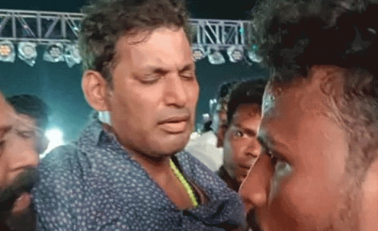 తమిళ నటుడు మరియు నిర్మాత విశాల్ ఆదివారం ఒక బహిరంగ కార్యక్రమంలో వేదికపై పడిపోయారు. అతను ట్రాన్స్ జెండర్ సంఘం నిర్వహించిన ఒక కార్యక్రమానికి హాజరవుతున్నప్పుడు ఈ సంఘటన జరిగింది. అతను పడిపోయే ముందు విశాల్ కొంచం ఇబ్బంది పడినట్లు కనిపించినట్లు సాక్షులు నివేదించారు. అతన్ని వెంటనే వైద్య సహాయం కోసం సమీపంలోని ఆసుపత్రికి తరలించారు. ఈ విష్యం అభిమానులలో మరియు శ్రేయోభిలాషులలో ఆందోళనను రేకెత్తించింది. చాలామంది సోషల్ మీడియాలో తమ ఆవేదనని వ్యక్తం చేశారు మరియు అతని ఆరోగ్య స్థితిపై స్పష్టత కోరుకున్నారు. పరిస్థితిని పరిష్కరించడానికి, విశాల్ బృందం తాను భోజనాన్ని దాటవేసిన తరువాత నటుడు అలసటతో పడిపోయినట్లు స్పష్టం చేస్తూ అధికారిక ప్రకటనను విడుదల చేసింది. ఆసుపత్రిలో వైద్యులు సమగ్ర పరీక్షలు చేసి పెద్ద ఆరోగ్య సమస్య లేదని ధృవీకరించారు. విశాల్ బాగా పనిచేస్తున్నట్లు మరియు ప్రస్తుతం రెస్ట్ తీసుకుంటున్నట్లు సమాచారం.